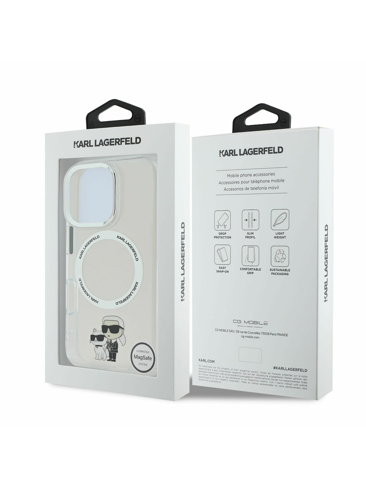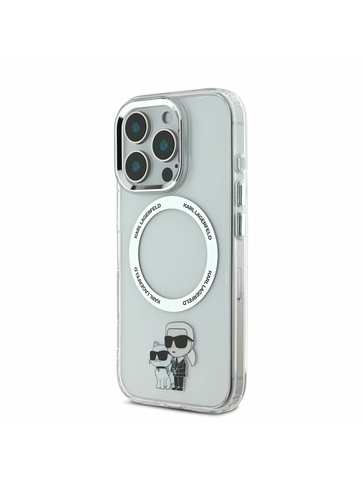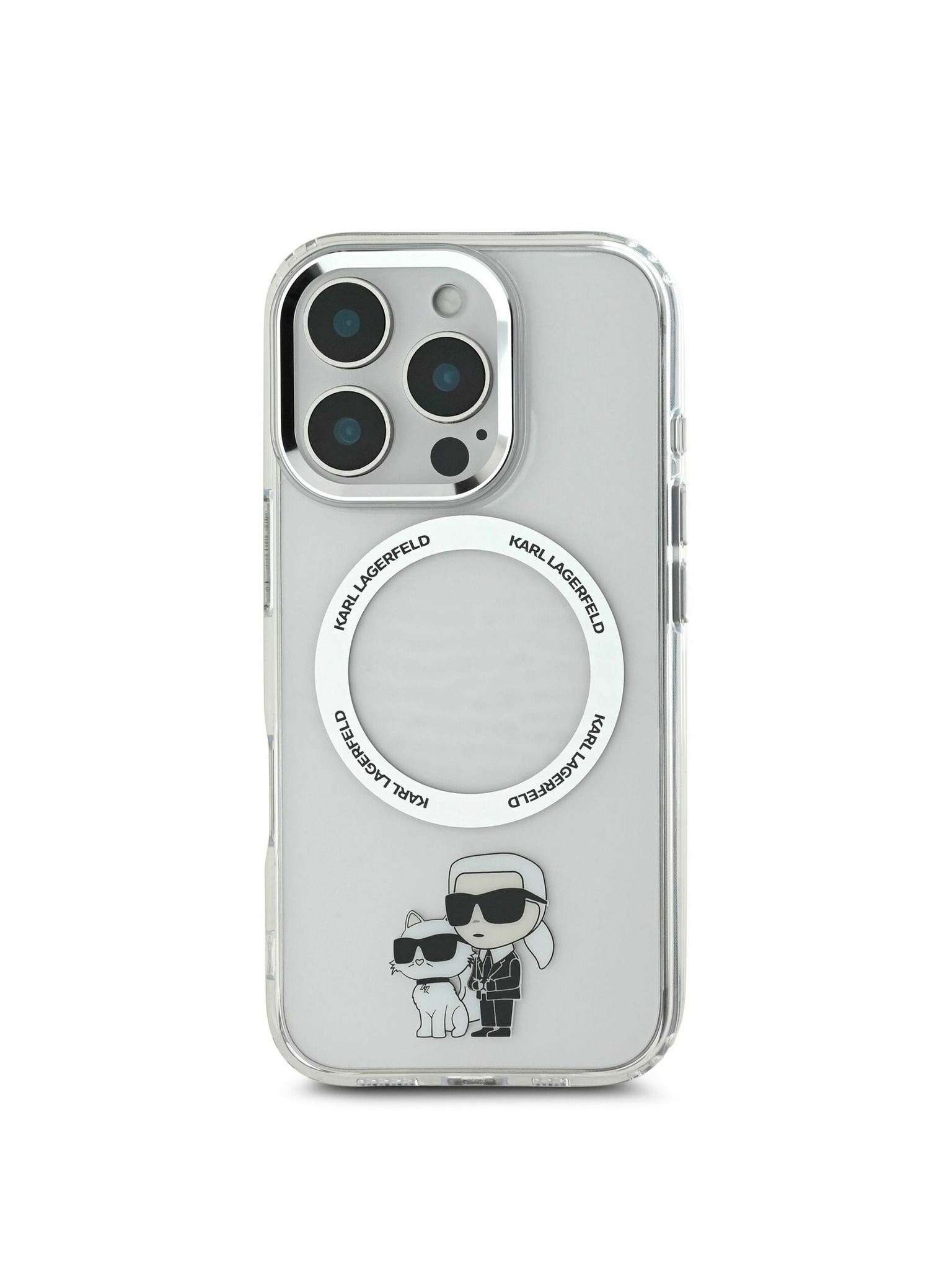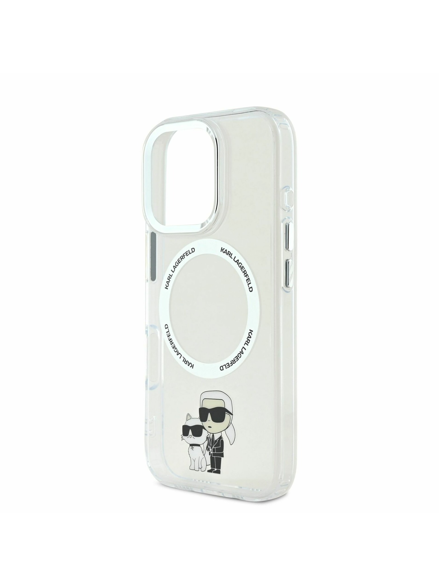 Karl Lagerfeld IML Bleščice Karl in Choupette Skica MagSafe Zadnji Pokrov za iPhone 16 Prozoren