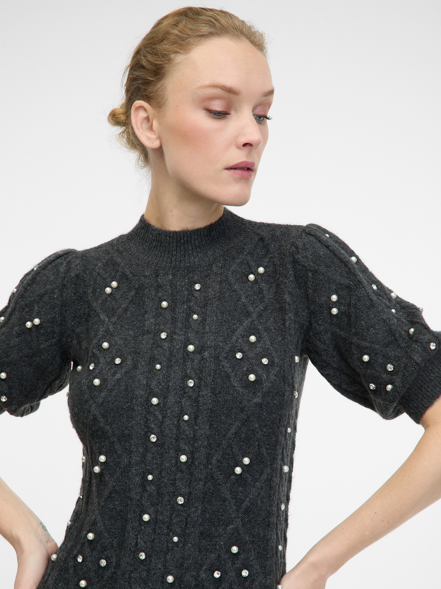 Svetlo roza ženska puloverska obleka ORSAY z mešanico volne