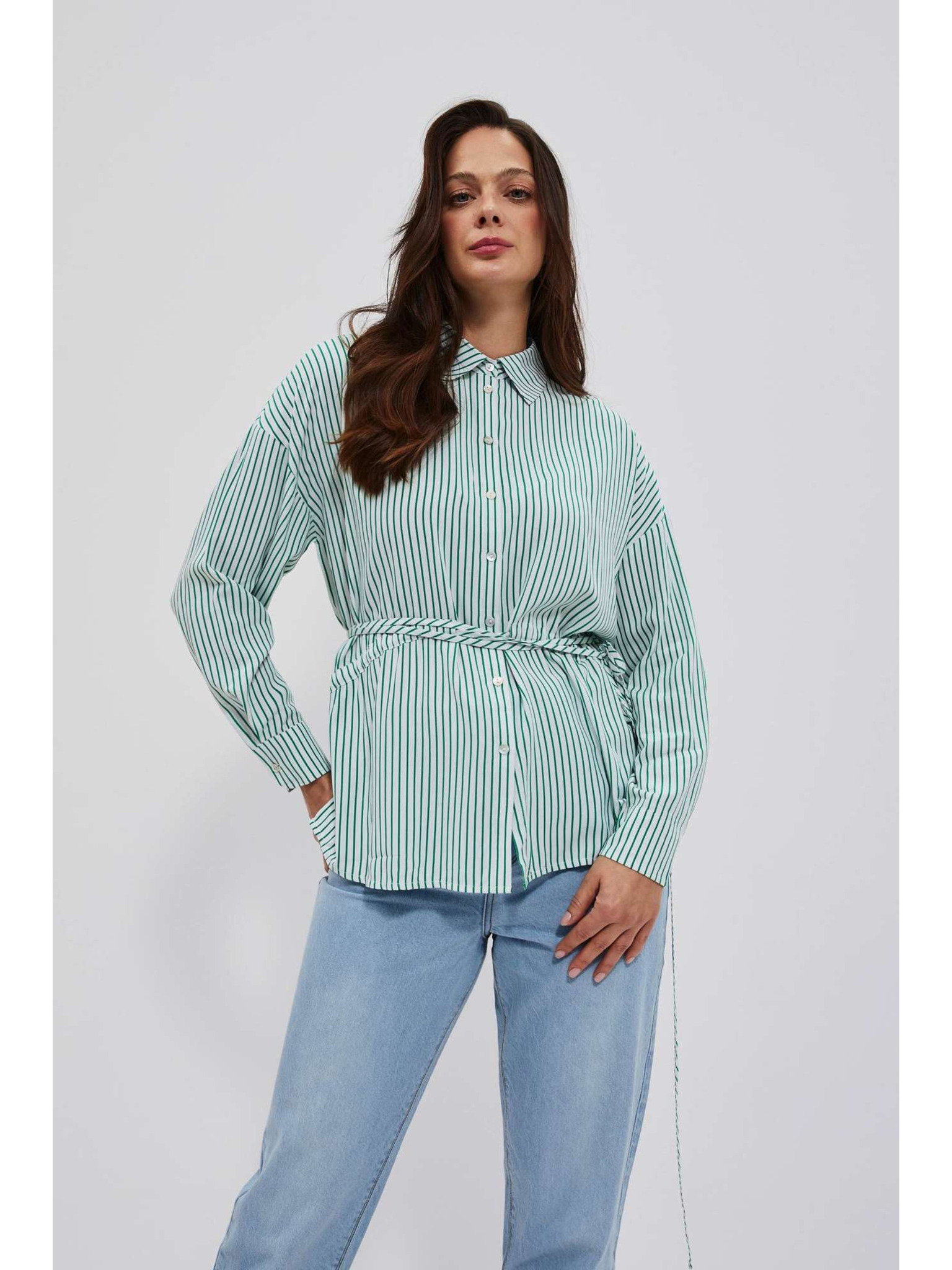 Olivna srajca Moodo z vezavo