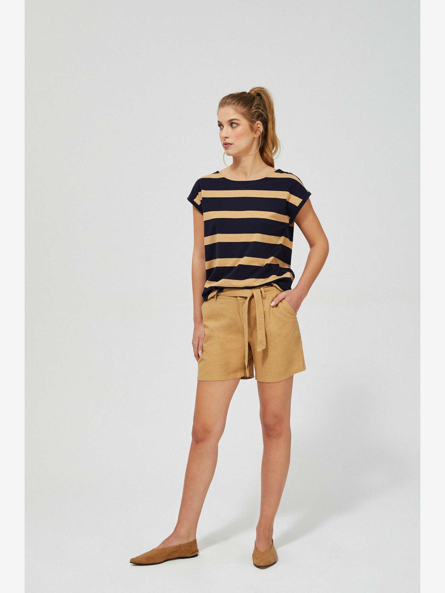 Bež ženske črtaste kratke hlače s platnom ZOOT.lab Jade