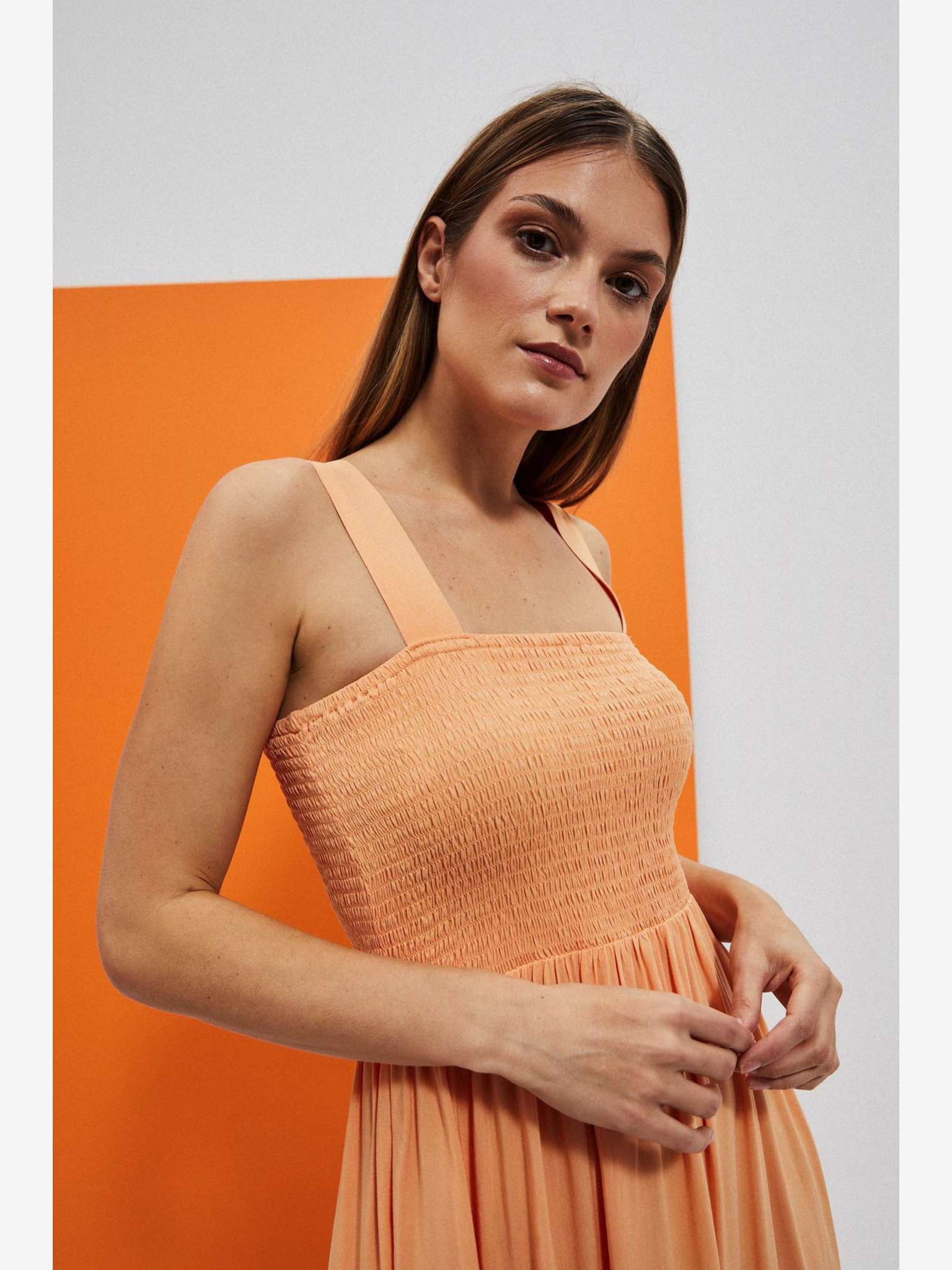Oranžna cvetlična obleka Moodo