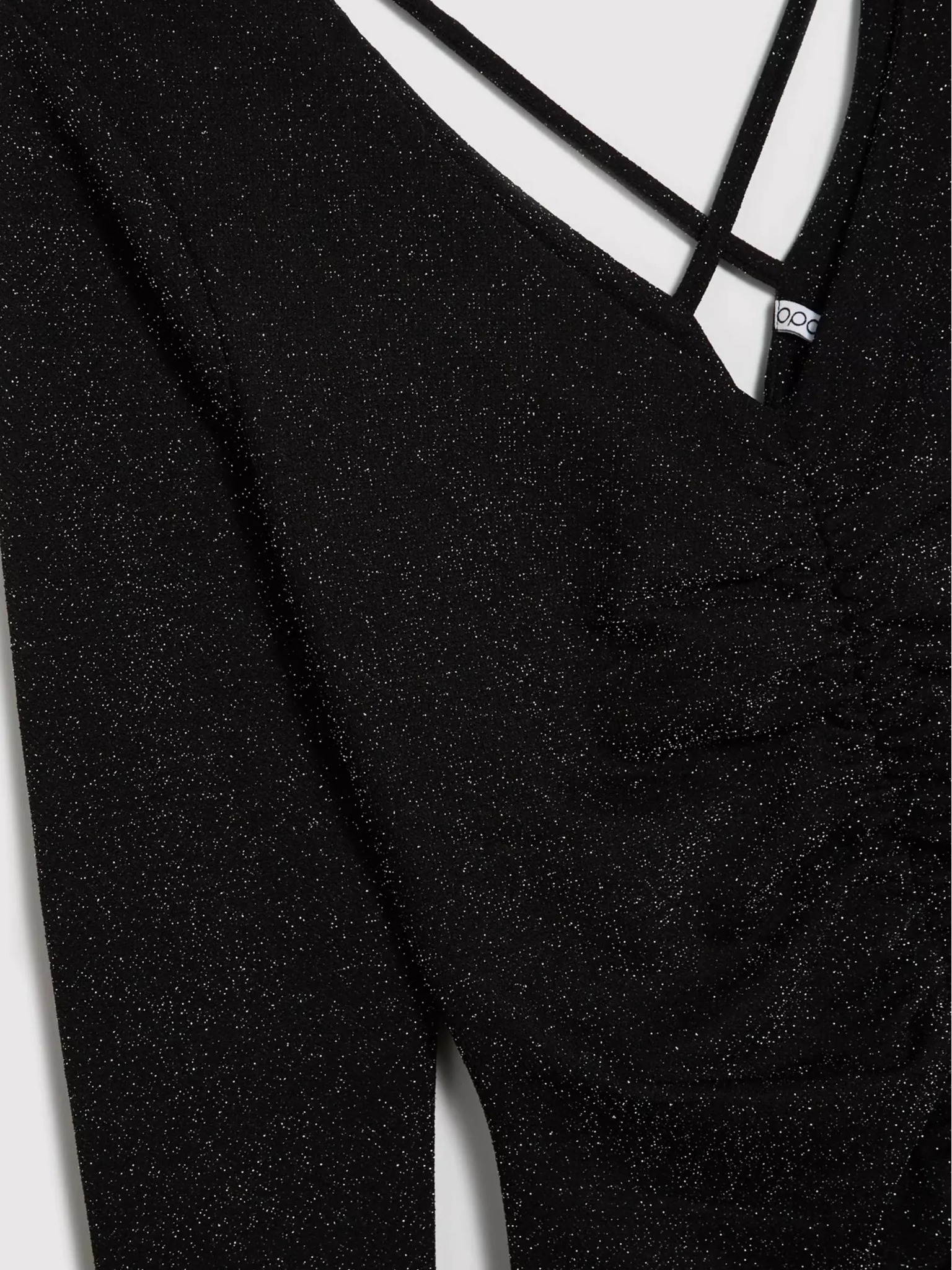 Črna bleščeča obleka s prosojnimi rokavi Moodo