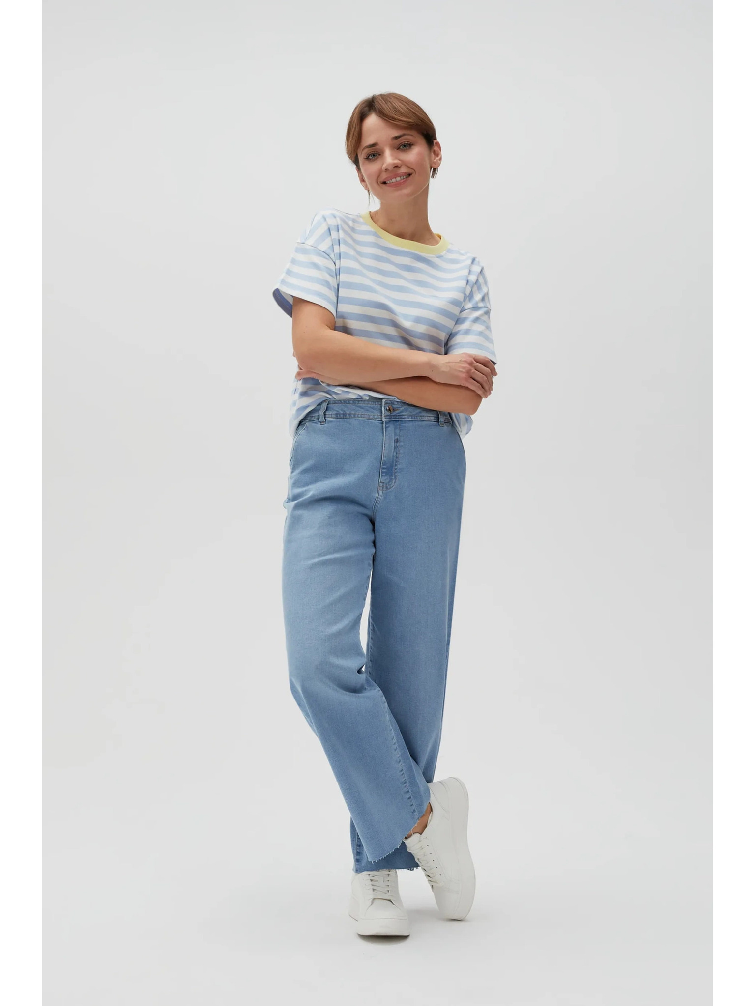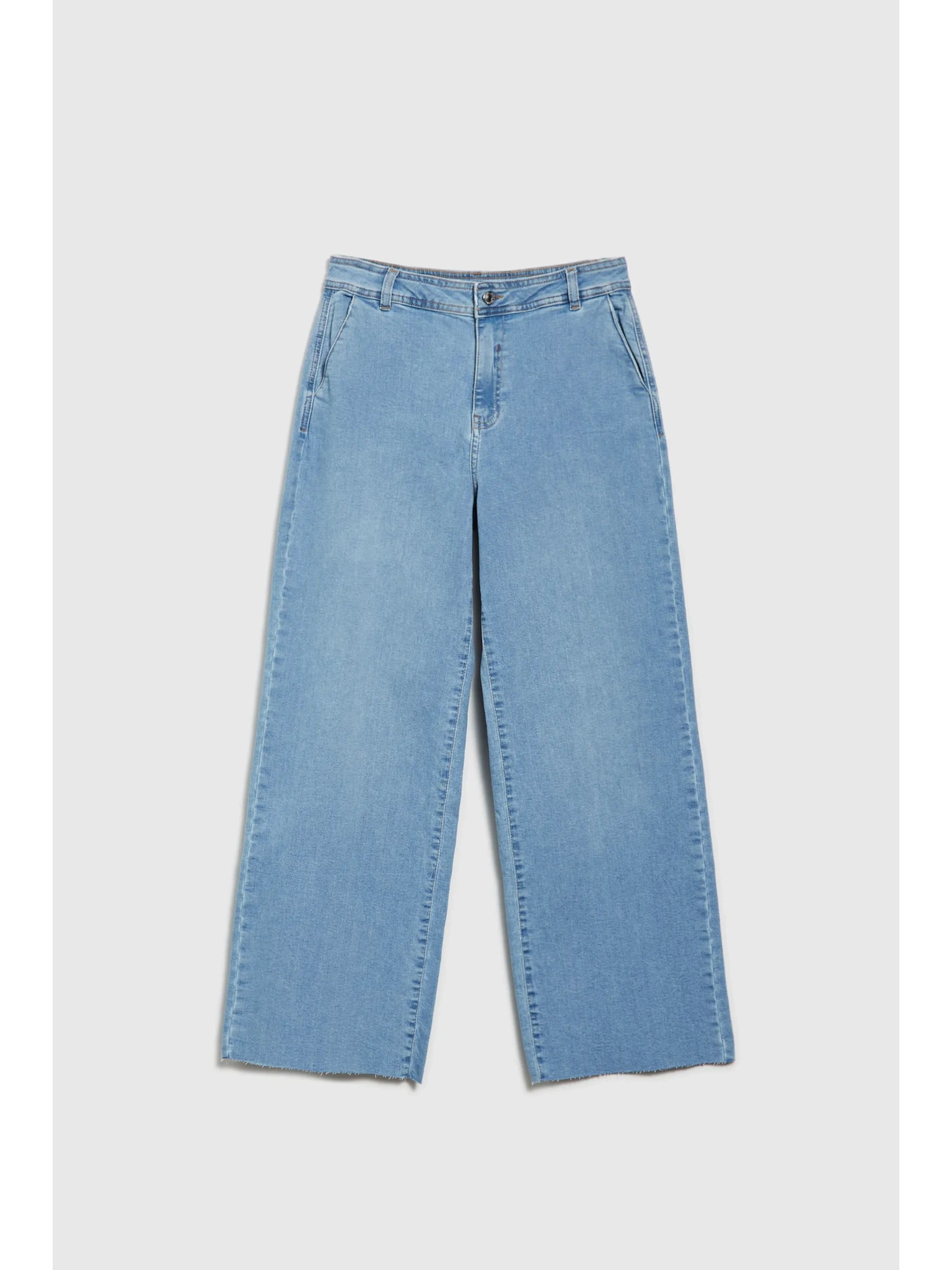 Svetlo modre jeans hlače z wide leg krojem Moodo