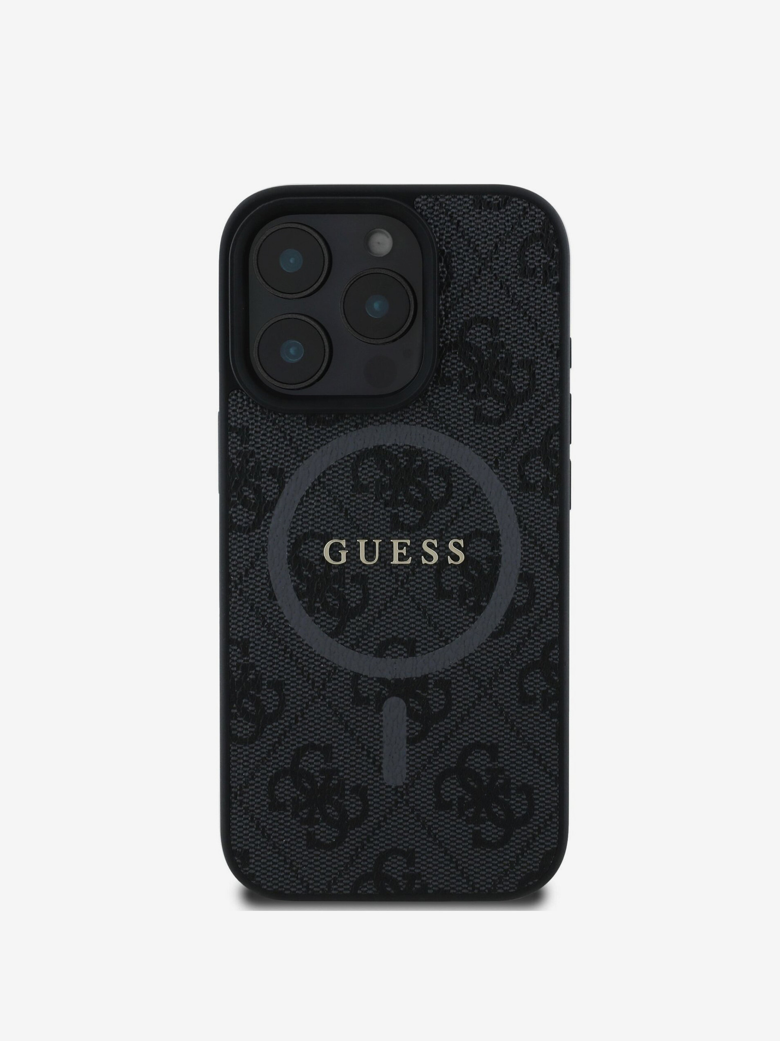 Guess PU Usnje 4G Barvni kolobarji Trak MagSafe Zadnji ovitek za iPhone 15 Pro Črn