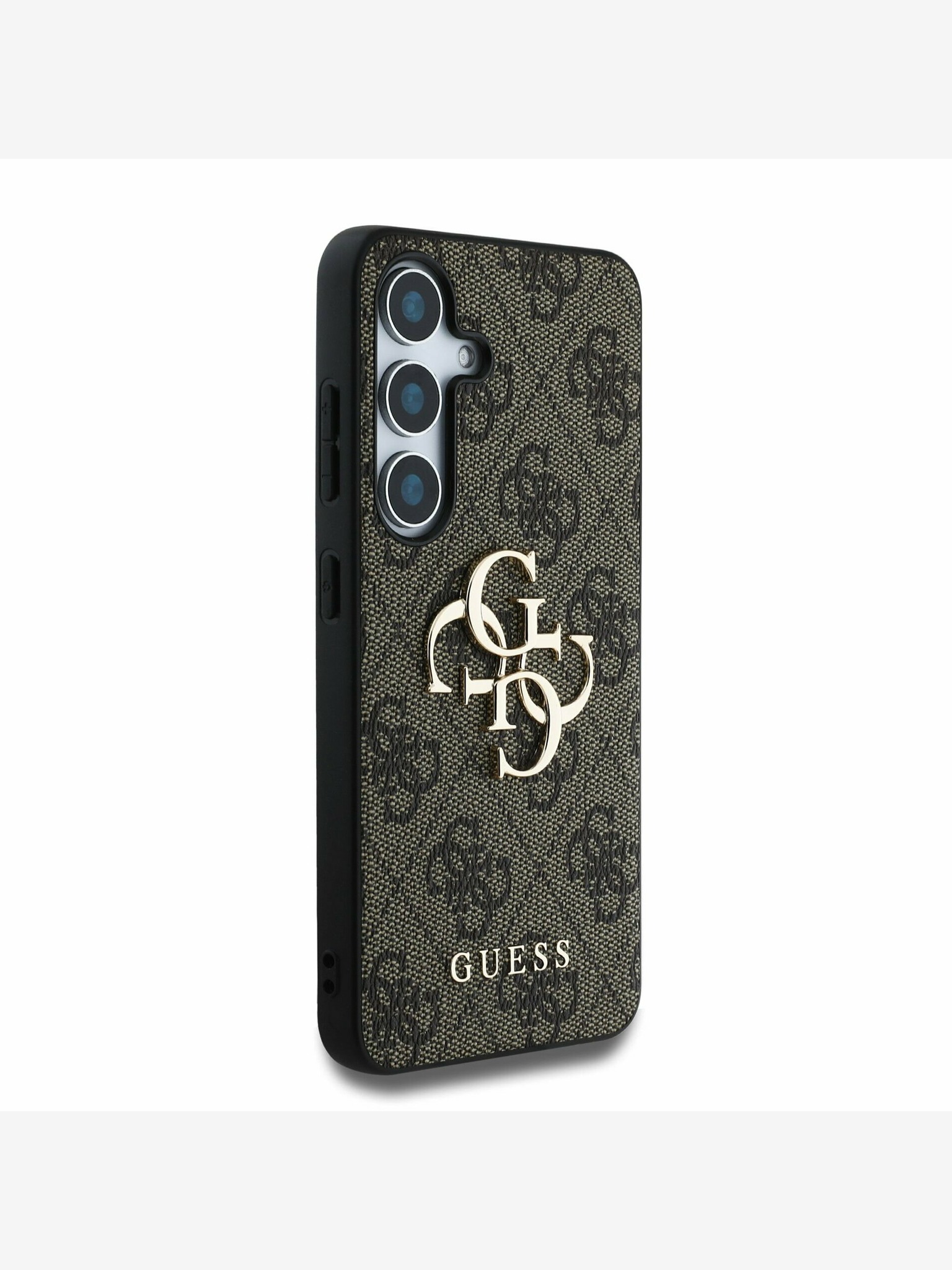 Guess PU 4G Metal Logo Strap Zadnji ovitek za iPhone 16 Rjav