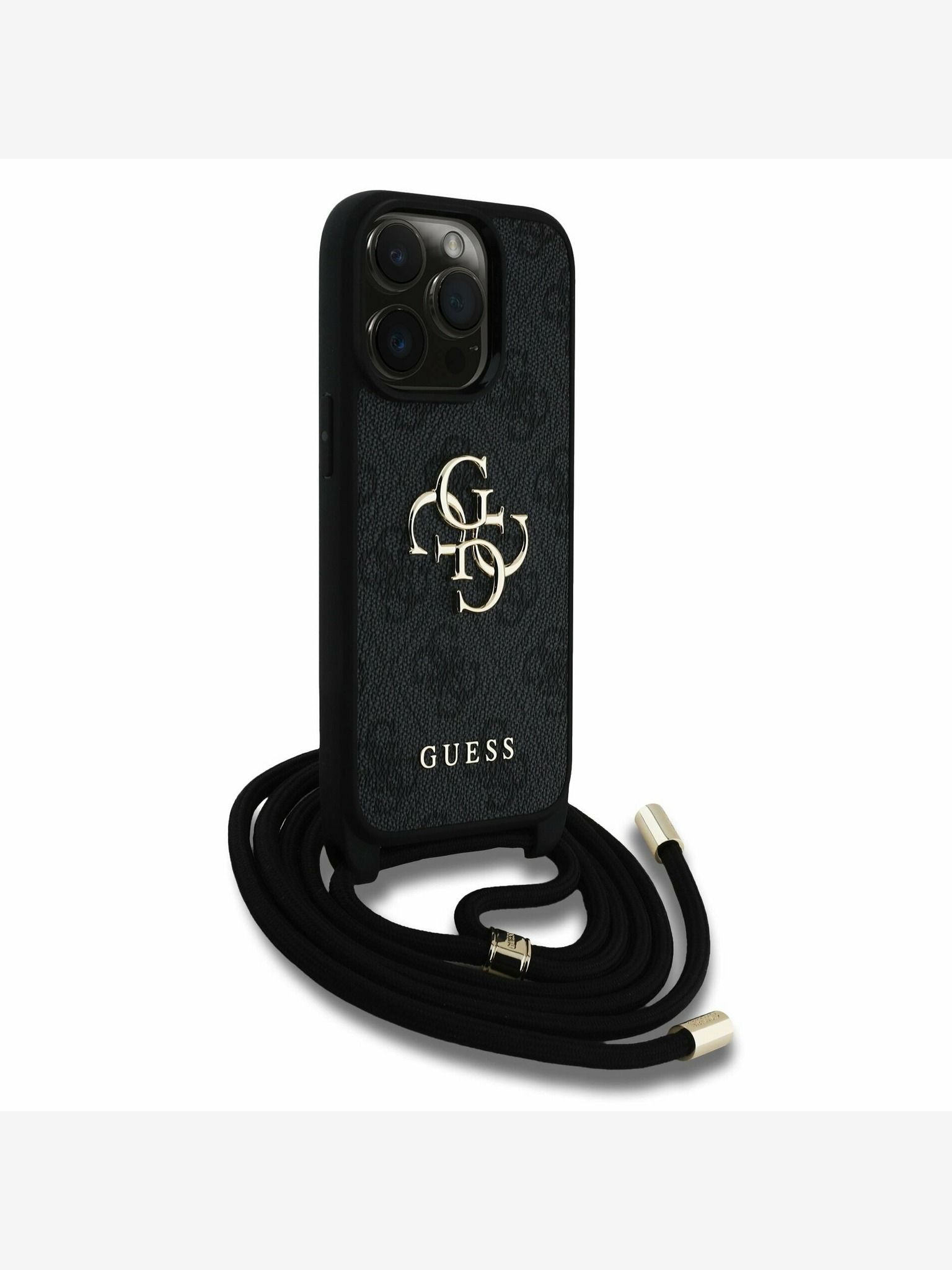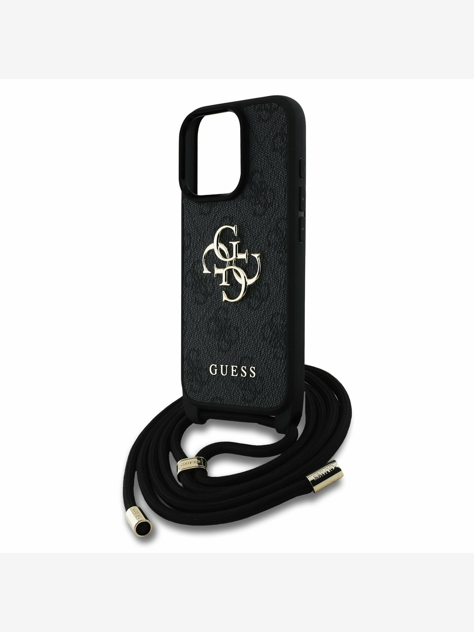 Guess PU 4G Metal Logo Strap Zadnji ovitek za iPhone 16 Rjav