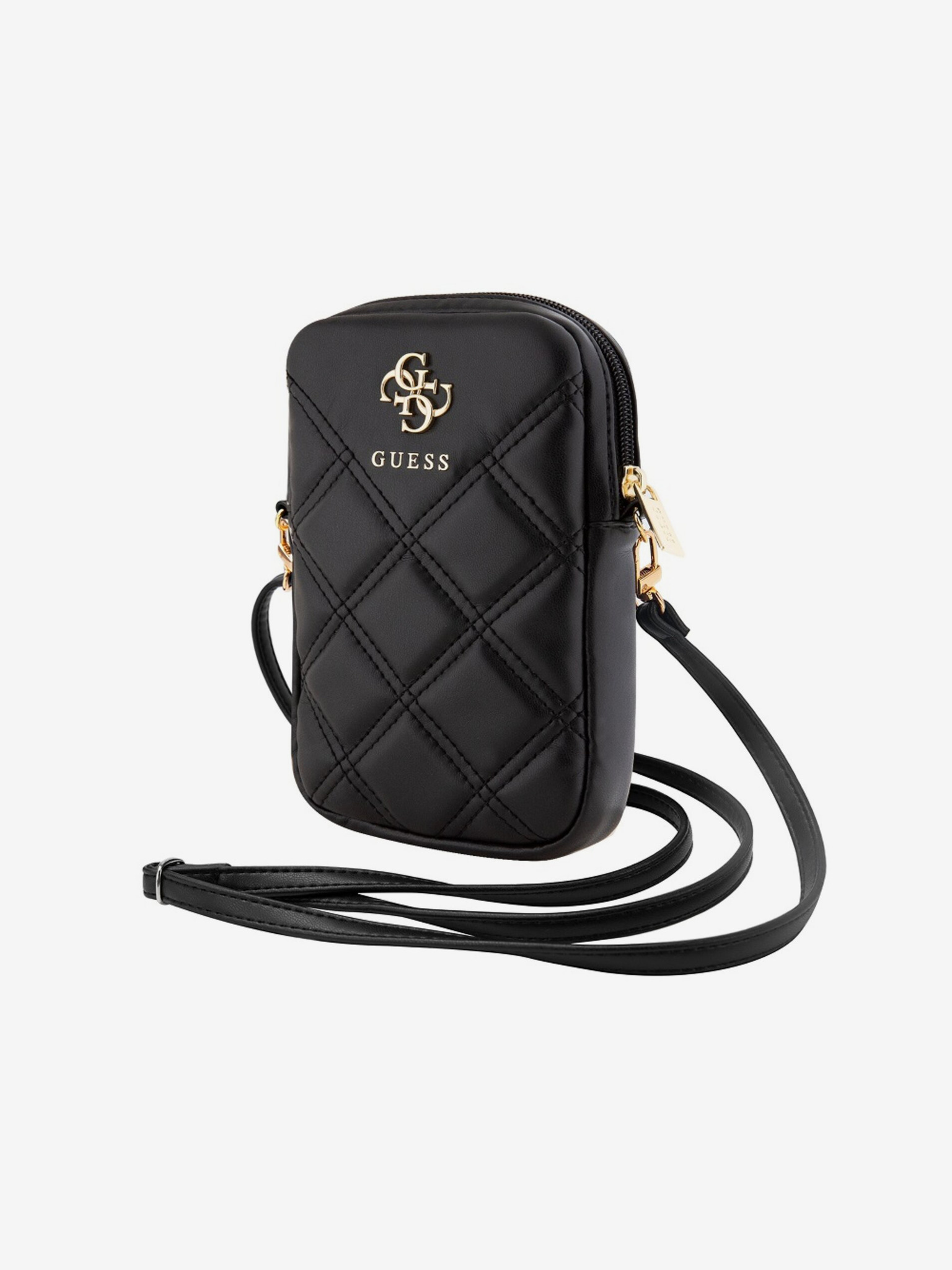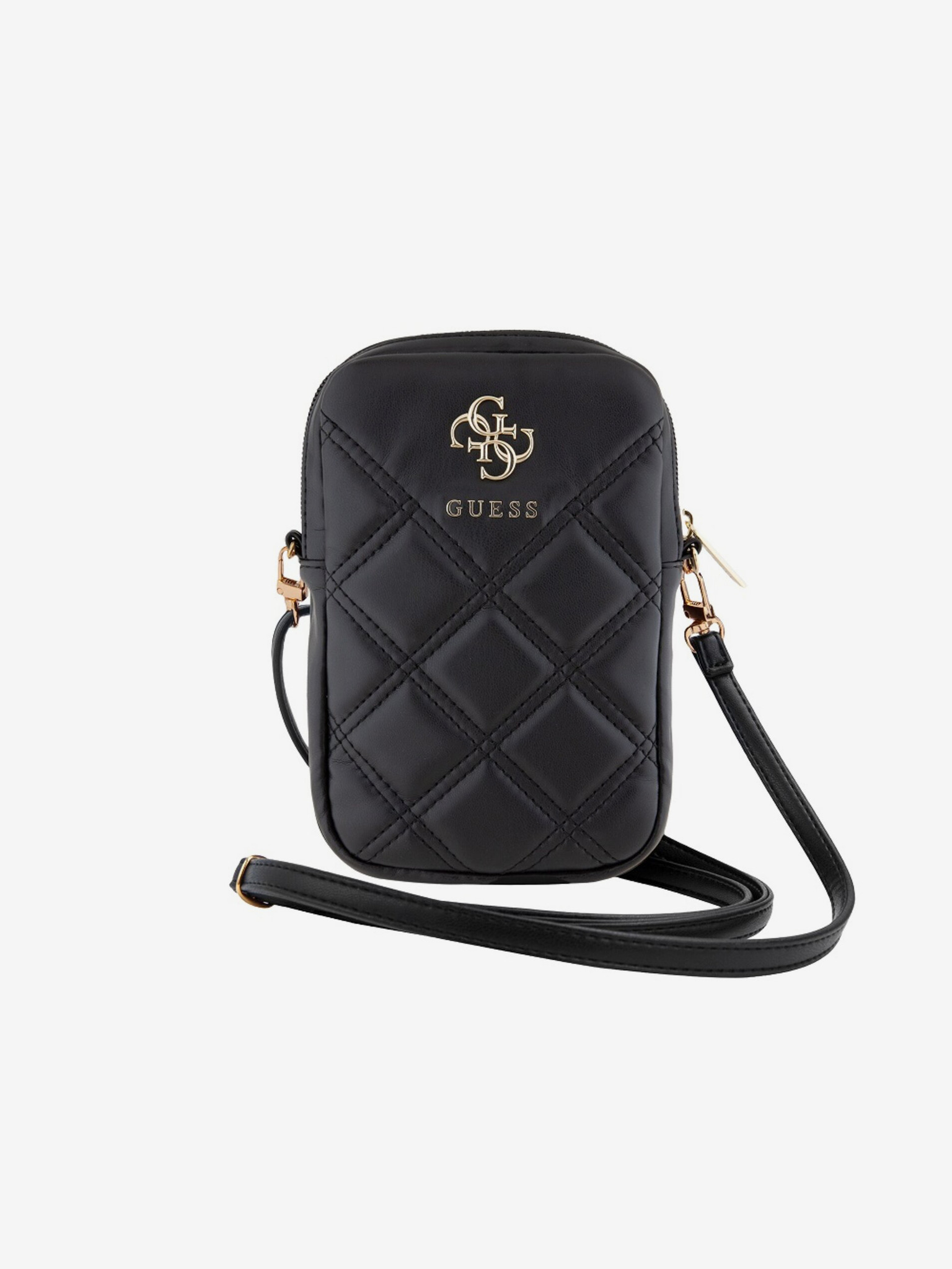 Guess PU prešita torbica za telefon s kovinskim logotipom 4G in zadrgo črna