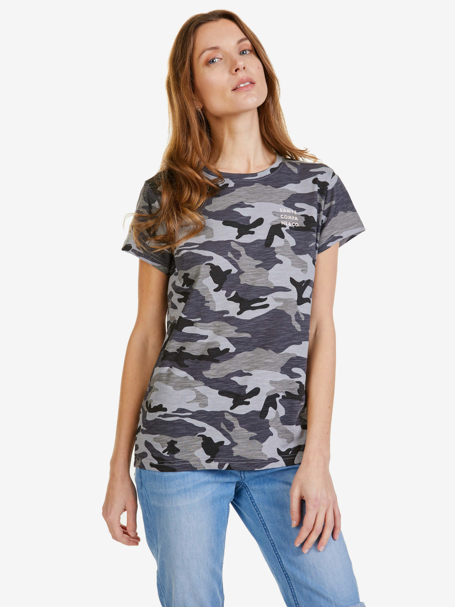 Temno siva ženska majica z vzorcem SAM 73 Nora