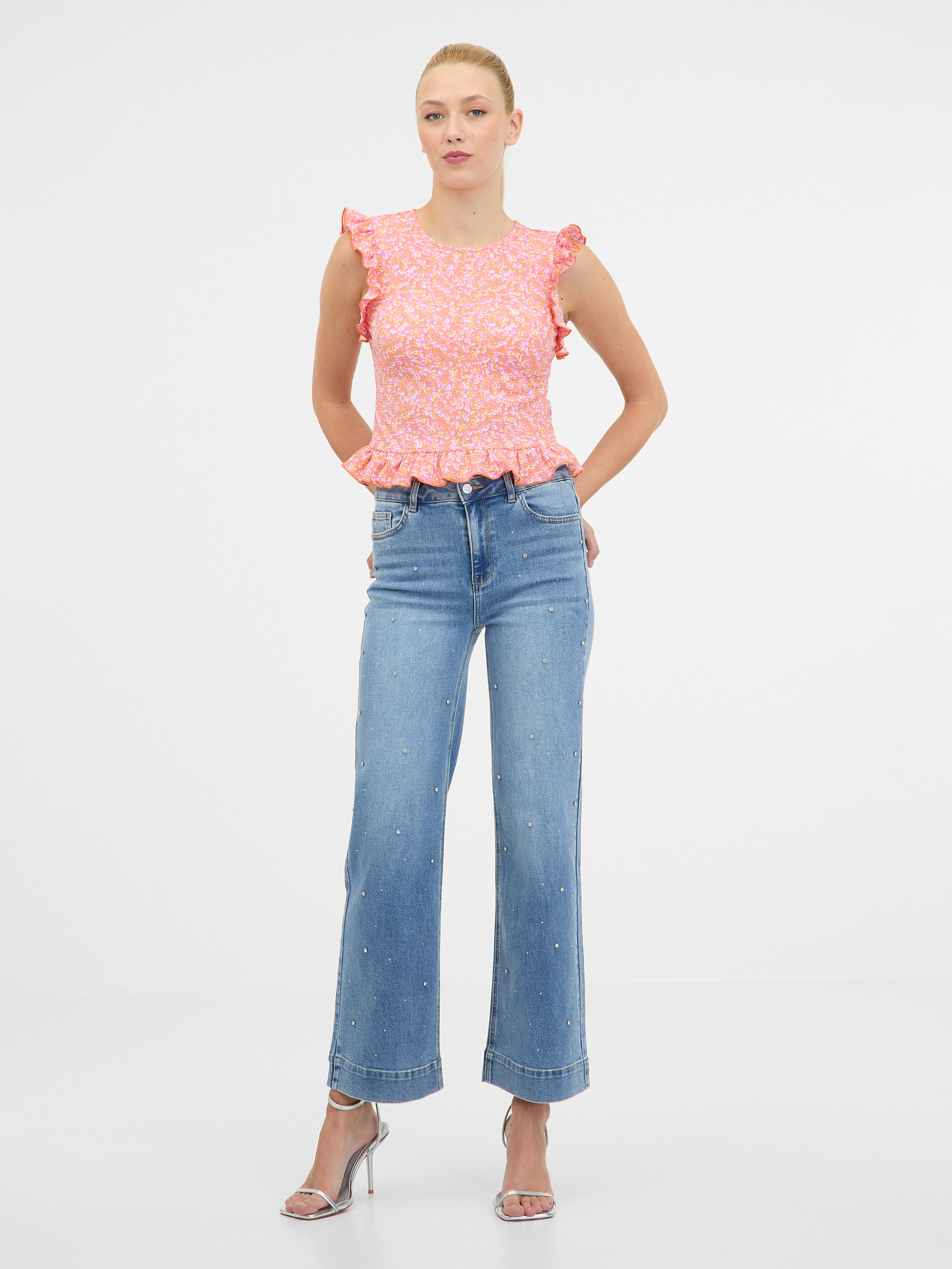 Rožnata ženska cvetlična bluza ORSAY