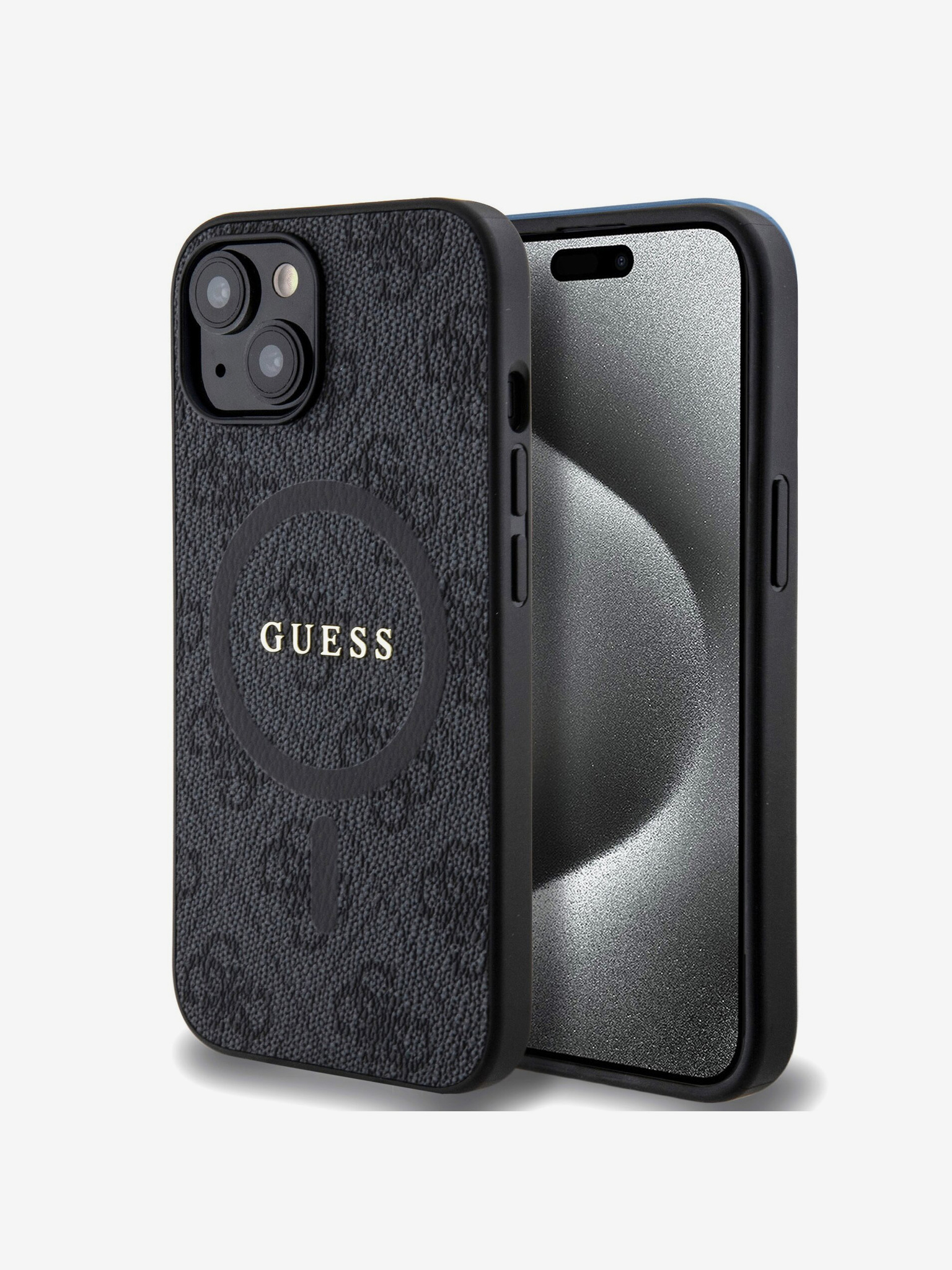 Guess PU Grained Classic Logo MagSafe hrbtni ovitek za iPhone 16 vijolične barve