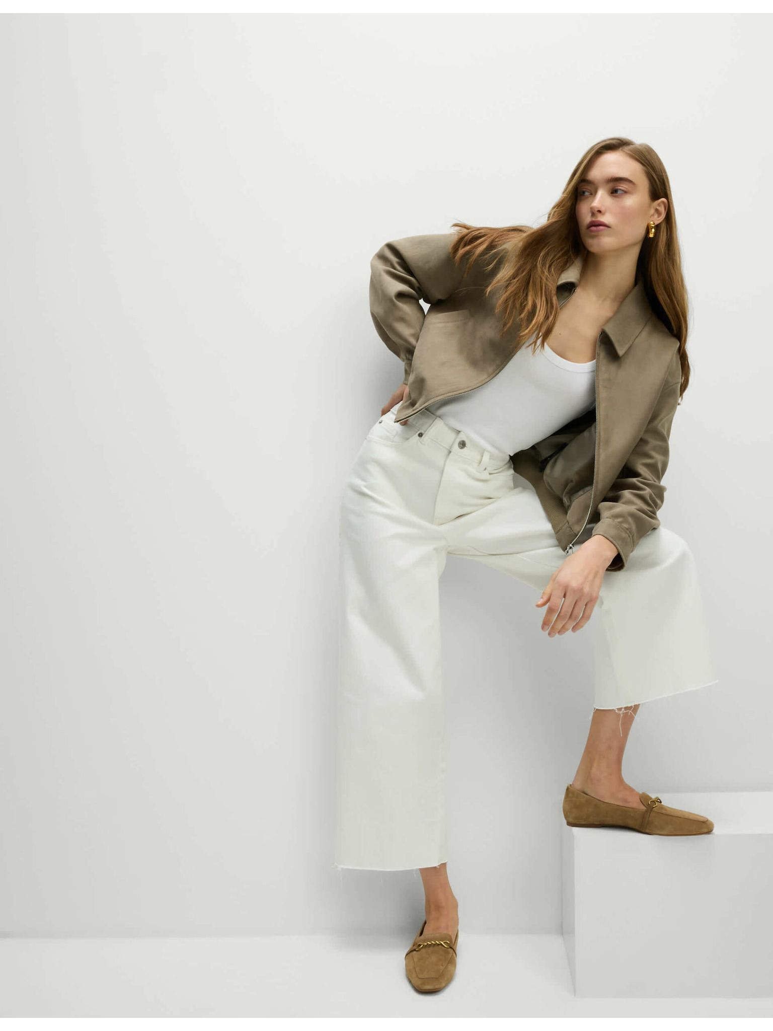 Bele ženske kavbojke s širokimi nogami ORSAY