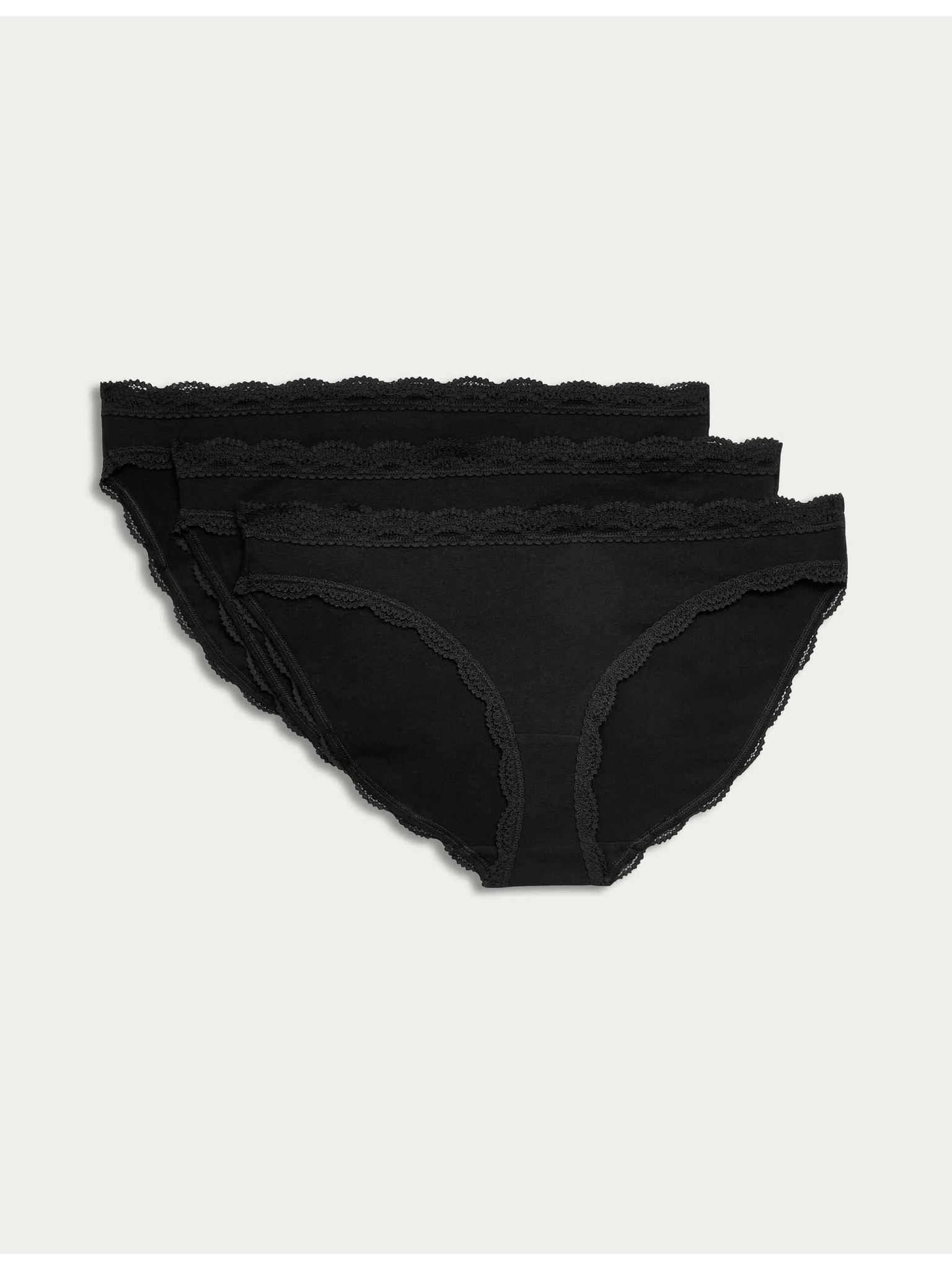Komplet treh ženskih brazilskih čipkastih hlačk s tehnologijo Flexifit™ Marks & Spencer v črni barvi