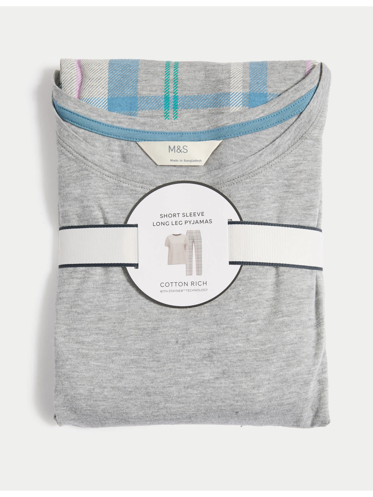 Rebrasti zgornji del pižame z izrezom ob vratu in dolgimi rokavi Marks & Spencer siva