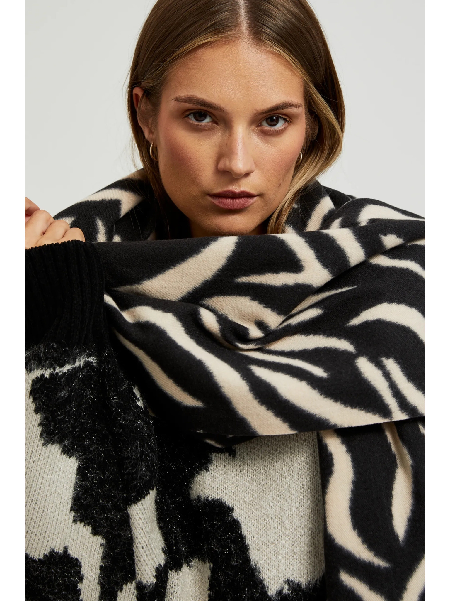 Belo-črni ženski vzorčasti šal Moodo