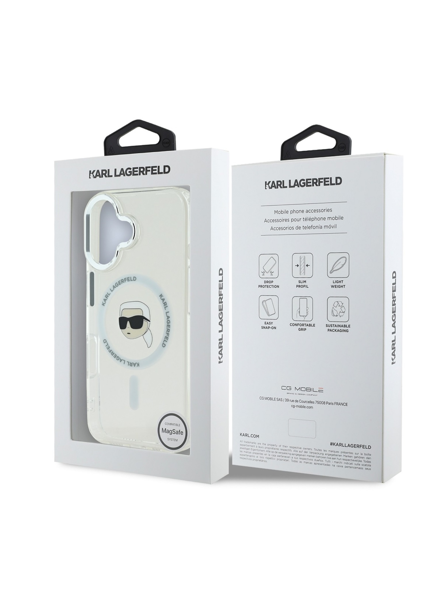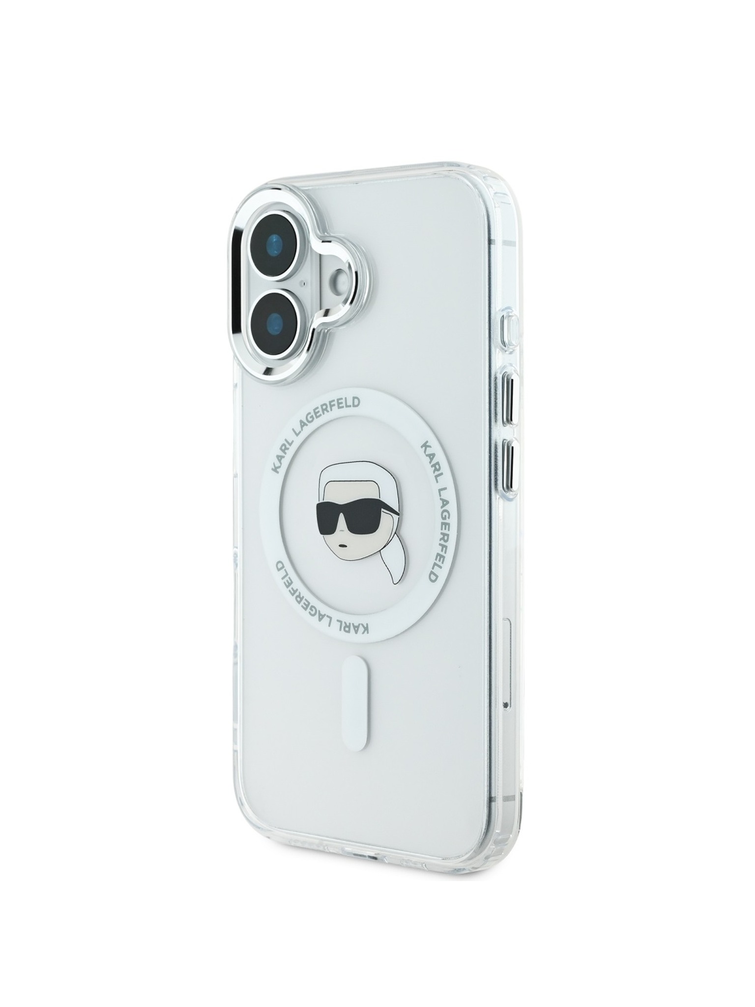 Karl Lagerfeld IML Karl Head Kovinski okvir MagSafe Zadnji pokrov za iPhone 16 Transparent