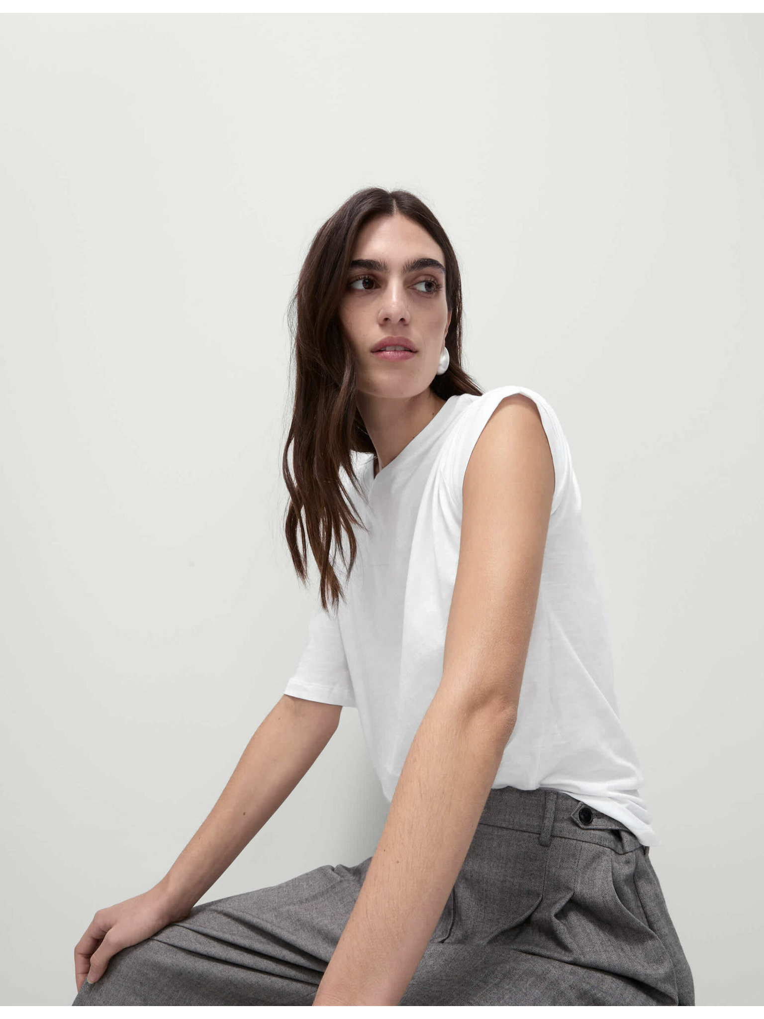 Rebrasta majica z visoko vsebnostjo bombaža, tankega kroja Marks & Spencer bela