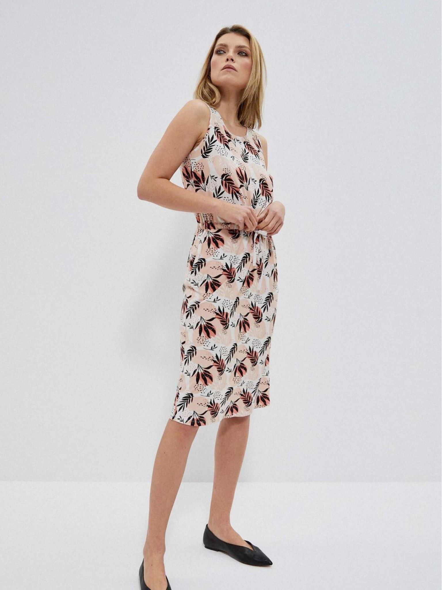 Bež ženska vzorčasta obleka Moodo