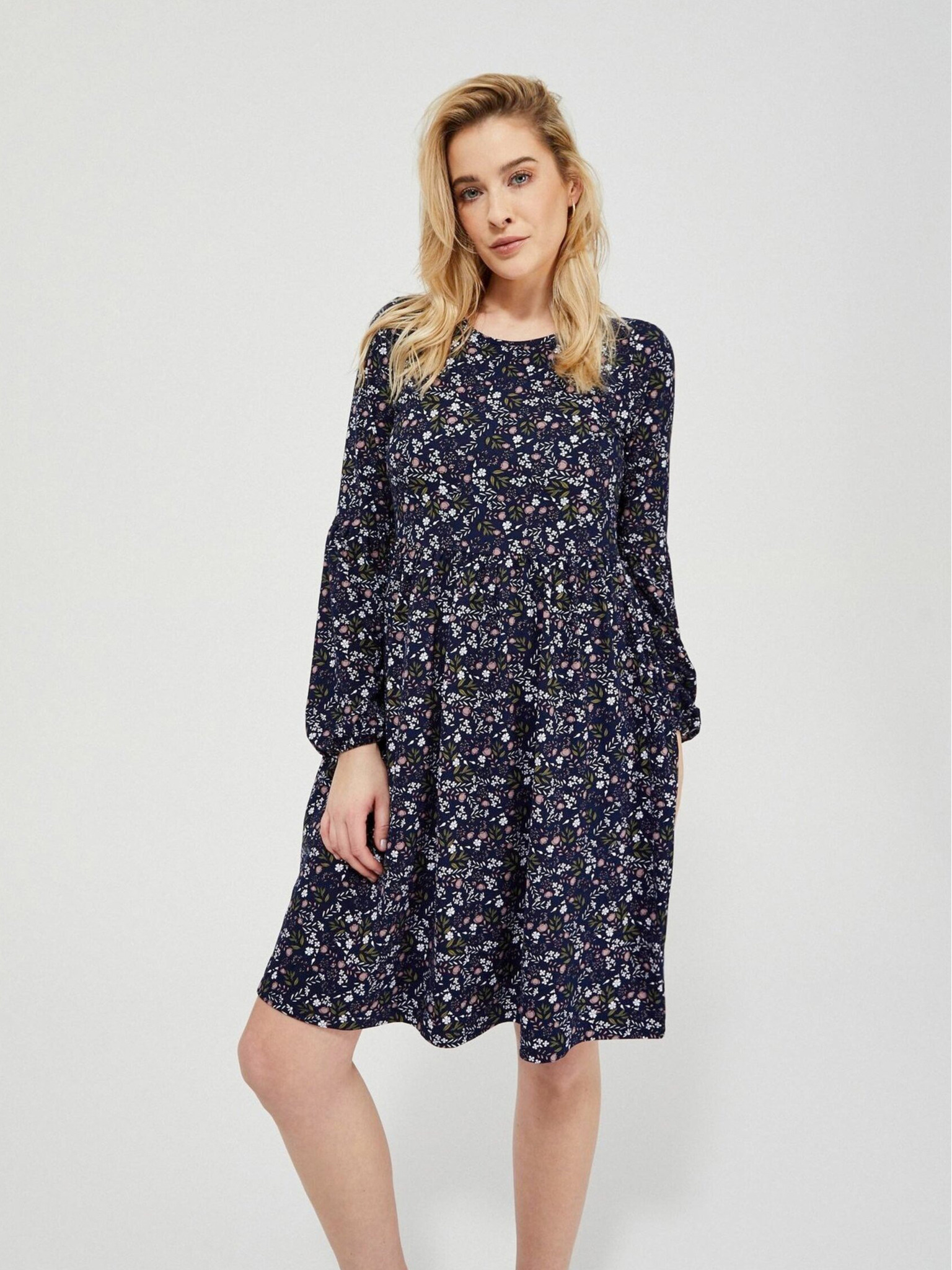 Temno modra ženska cvetlična obleka Moodo