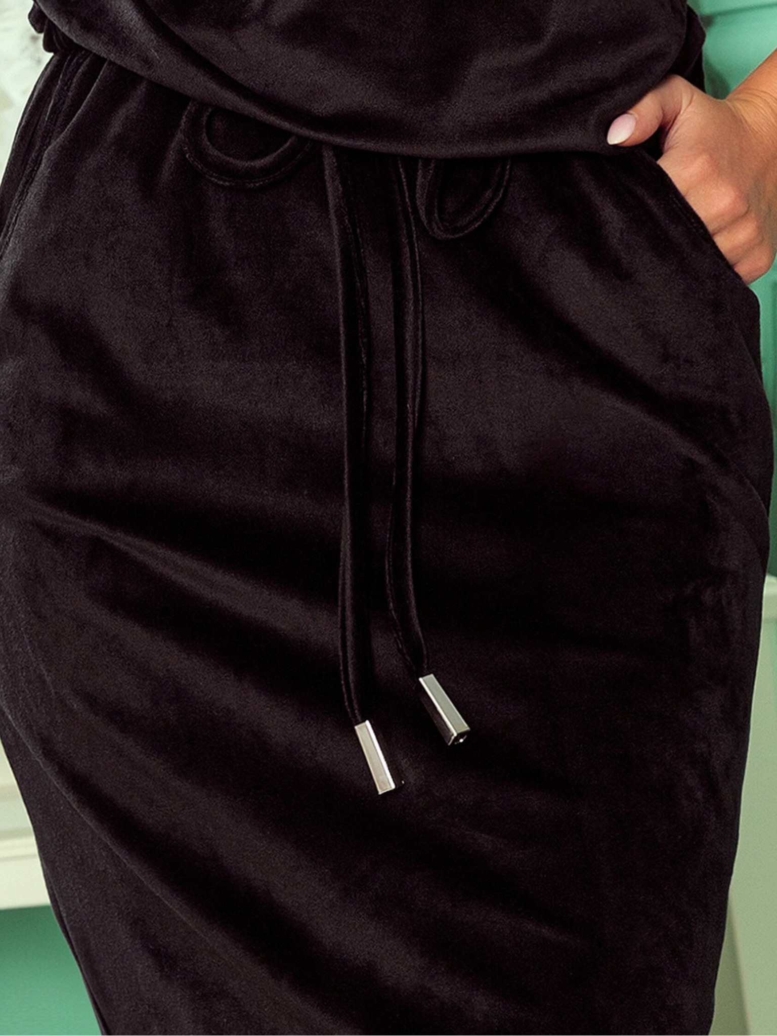 Črna ženska svetleča dolga obleka z rokavi in izrezom Numoco