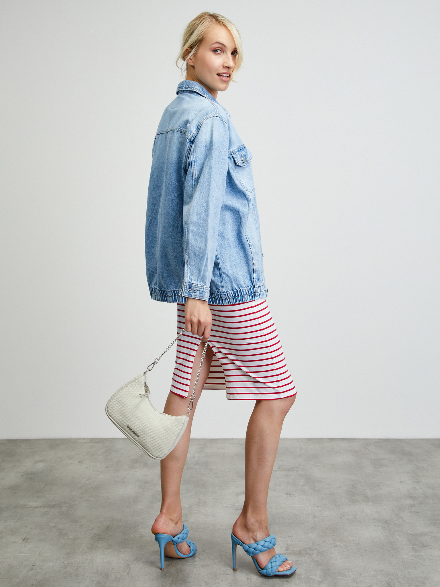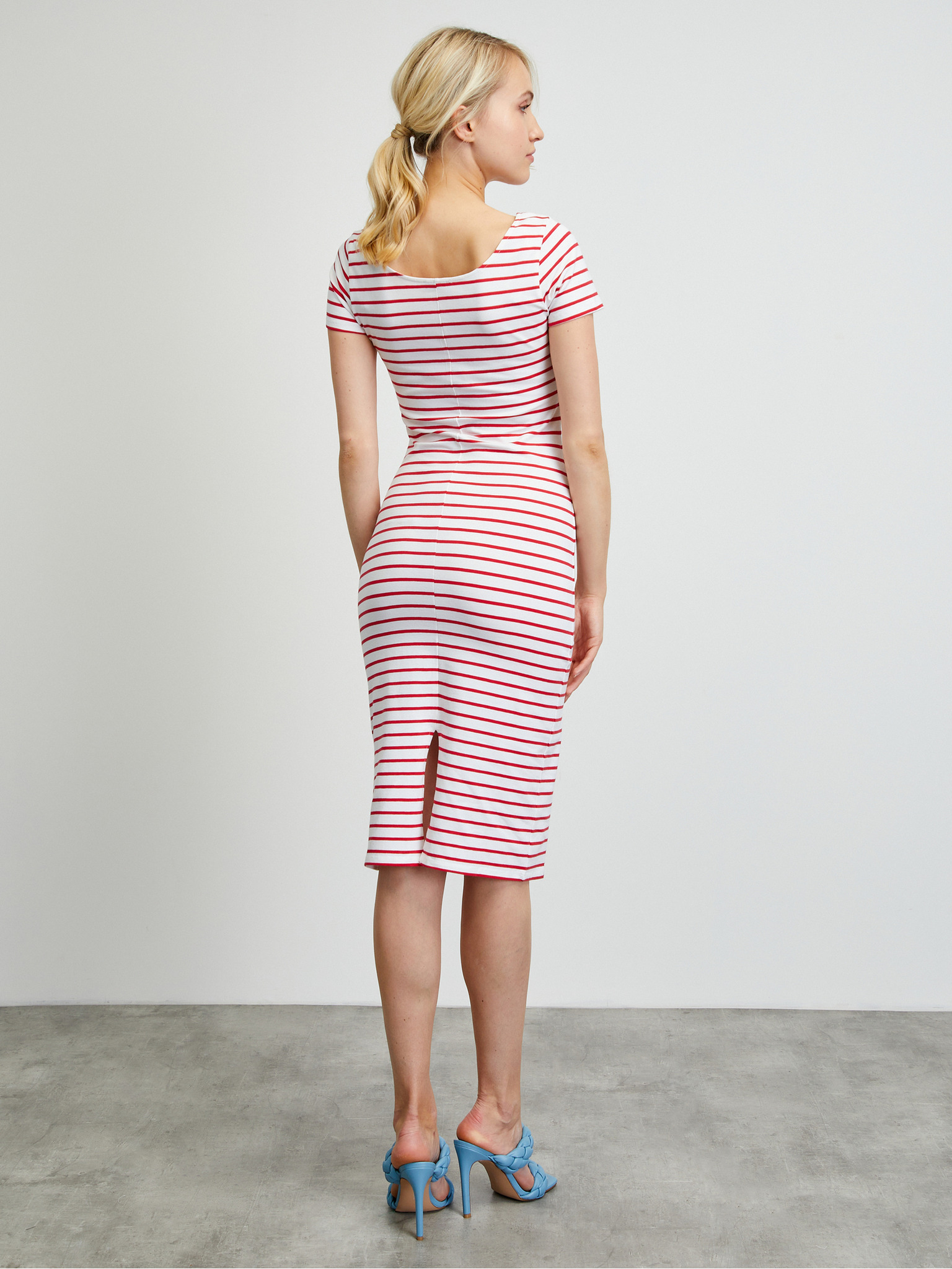 Svetlo modra ženska rebrasta obleka z razporkom ZOOT.lab Delie