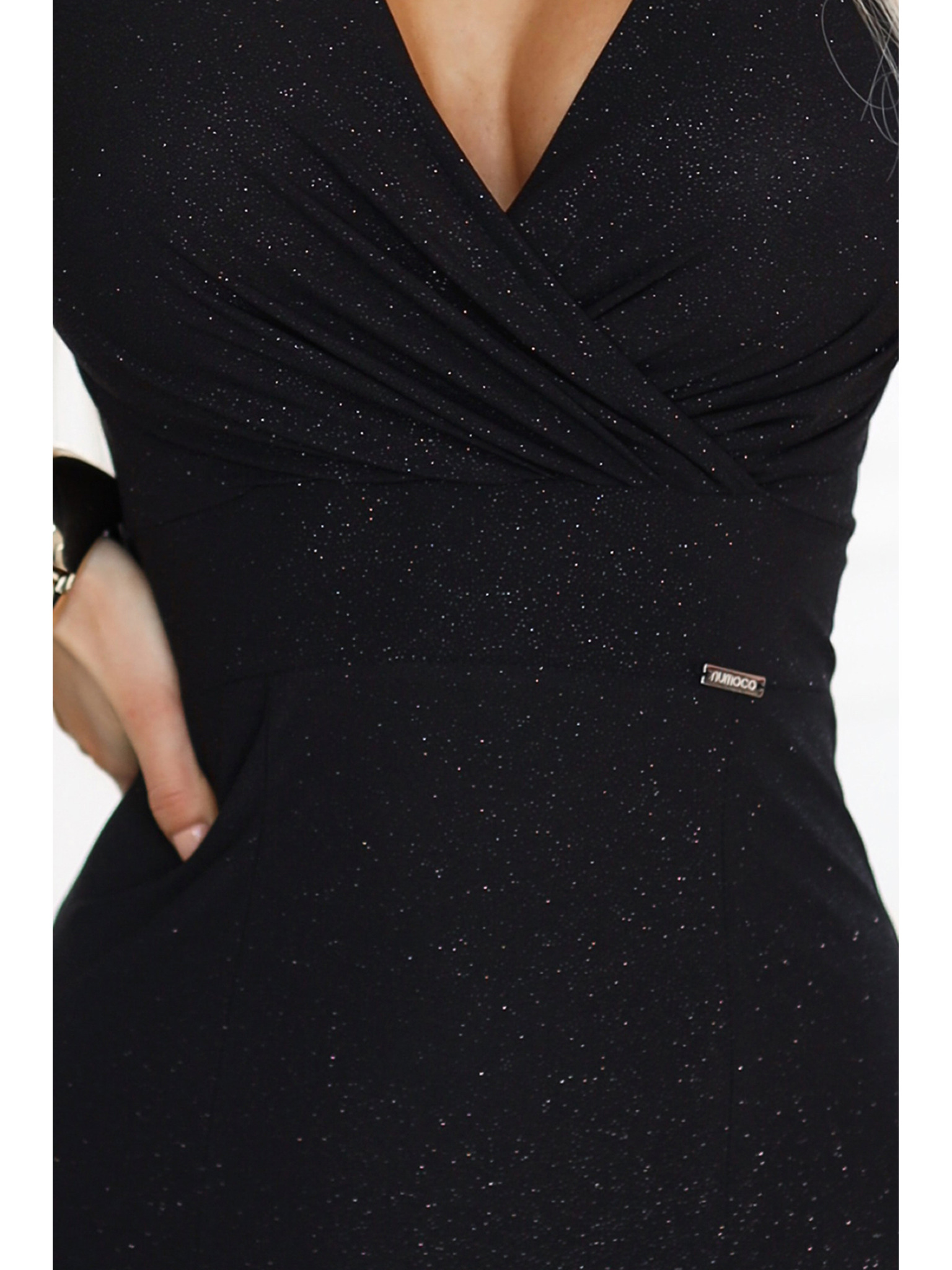 Bleščeča obleka z dolgimi rokavi in dekoltejem - črna Numoco NELA