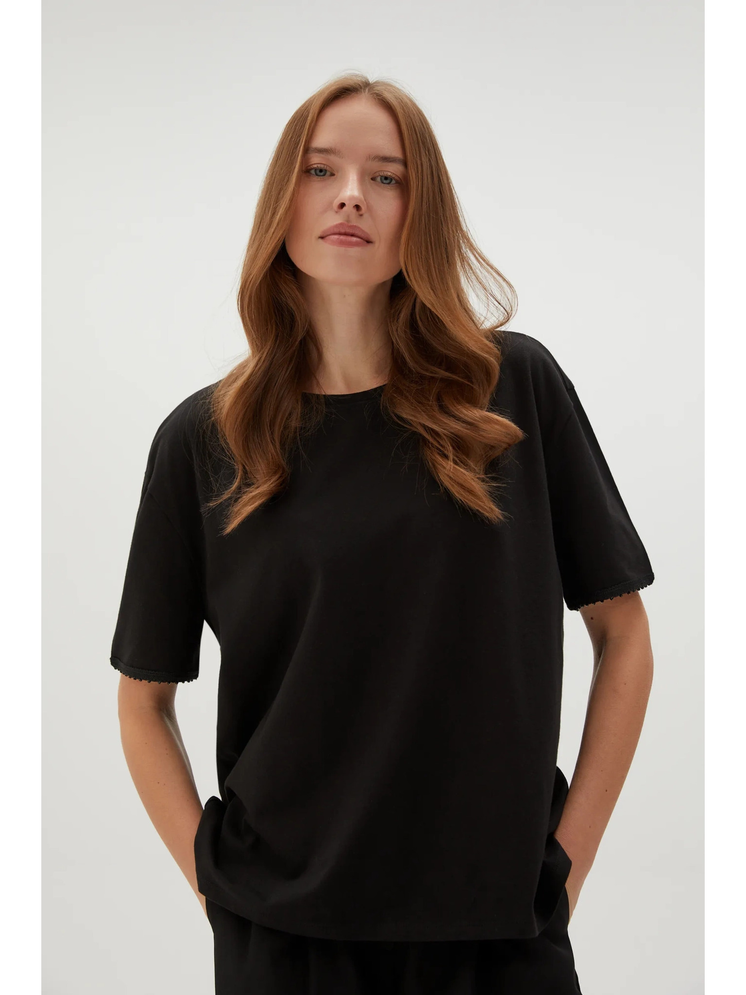 Žensko majčko z biseri Moodo – črno