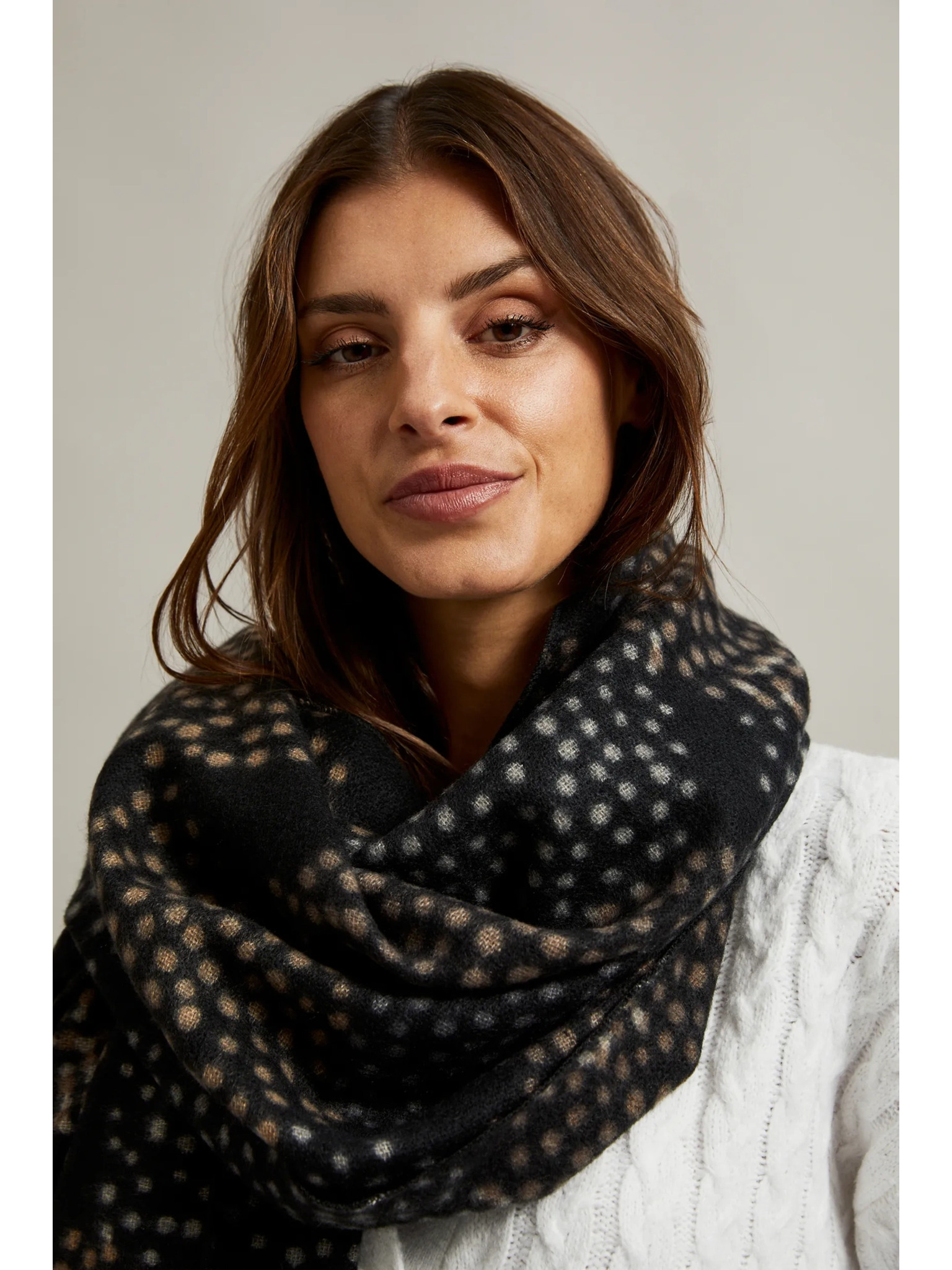 Bielo-hnedá dámska kockovaná šála Moodo