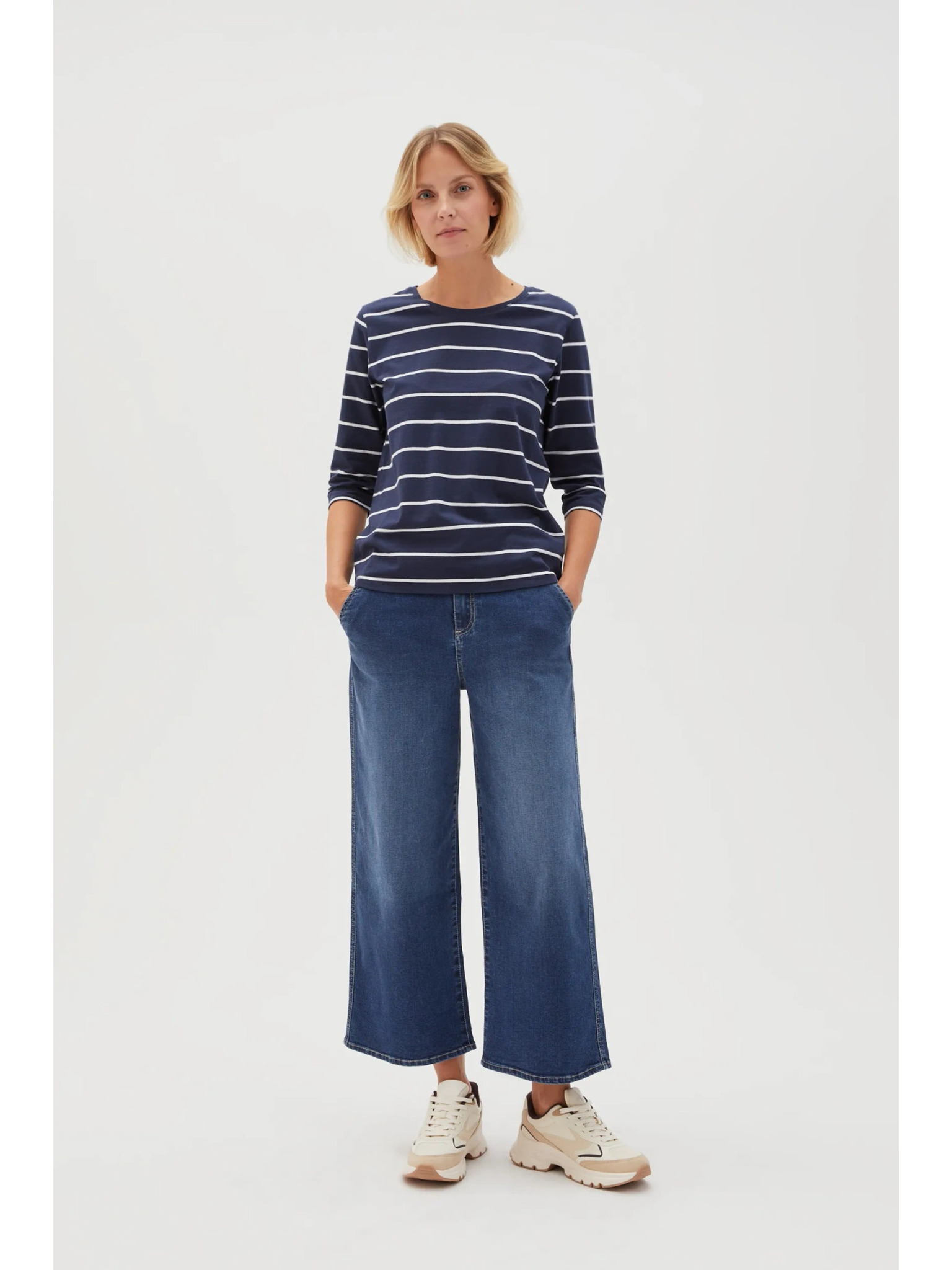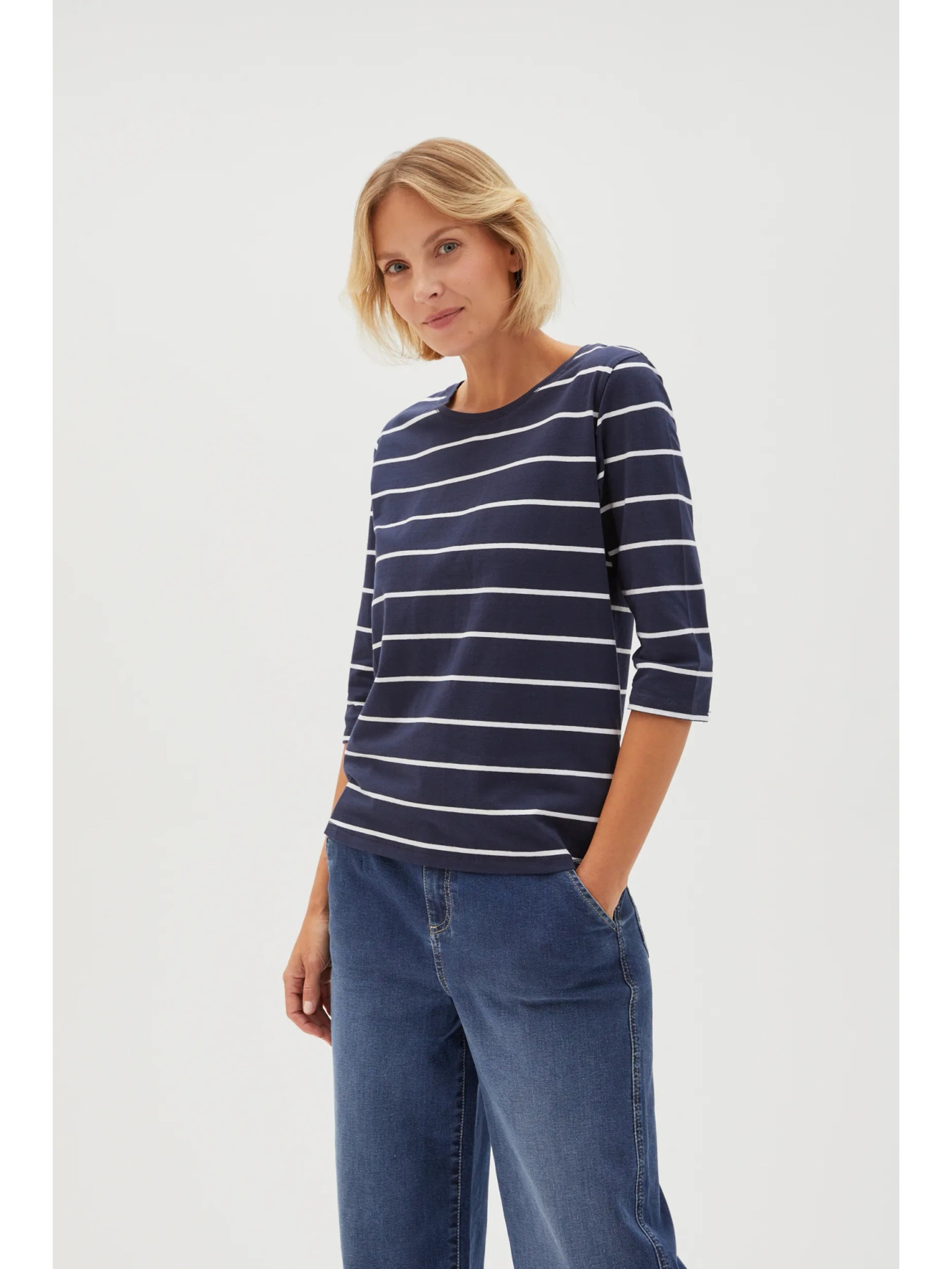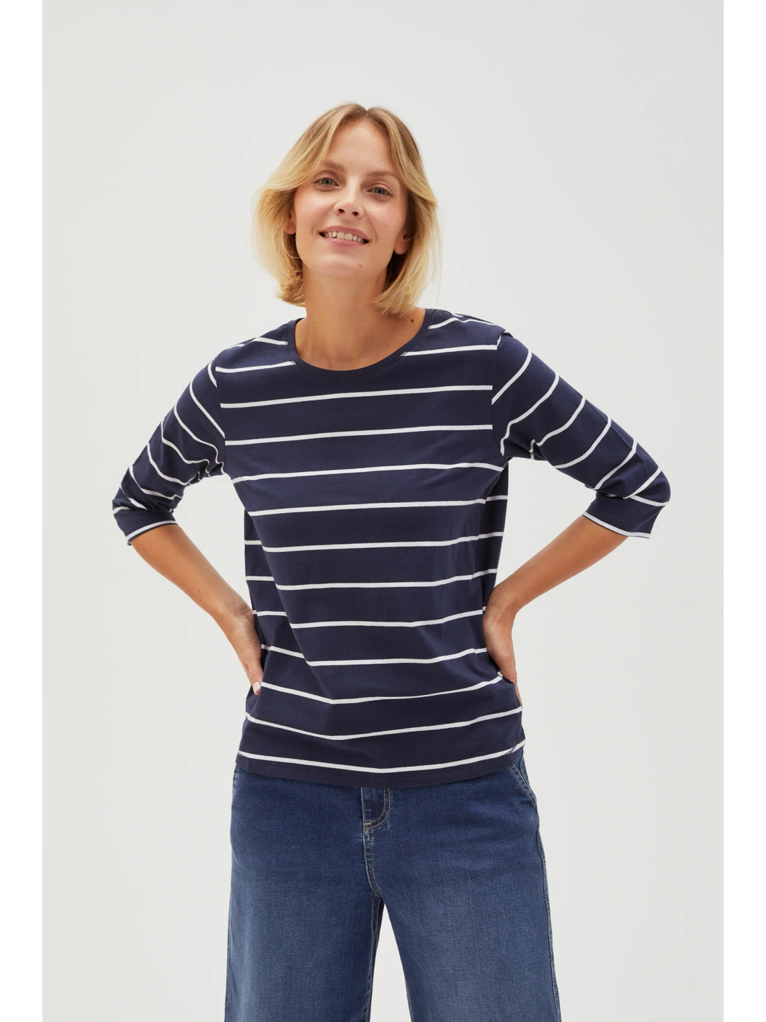 Temno modra ženska progasta majica z dolgimi rokavi ORSAY
