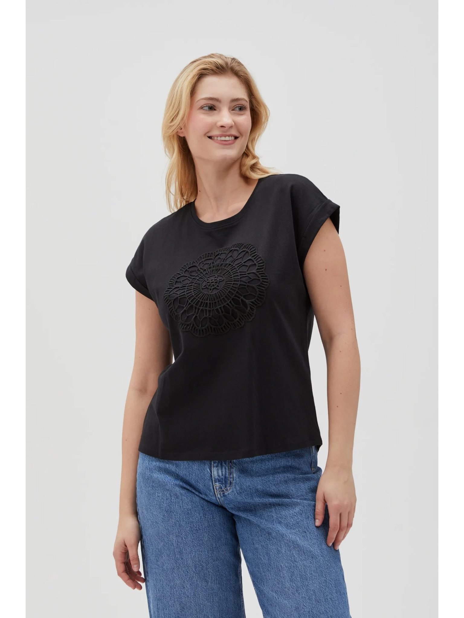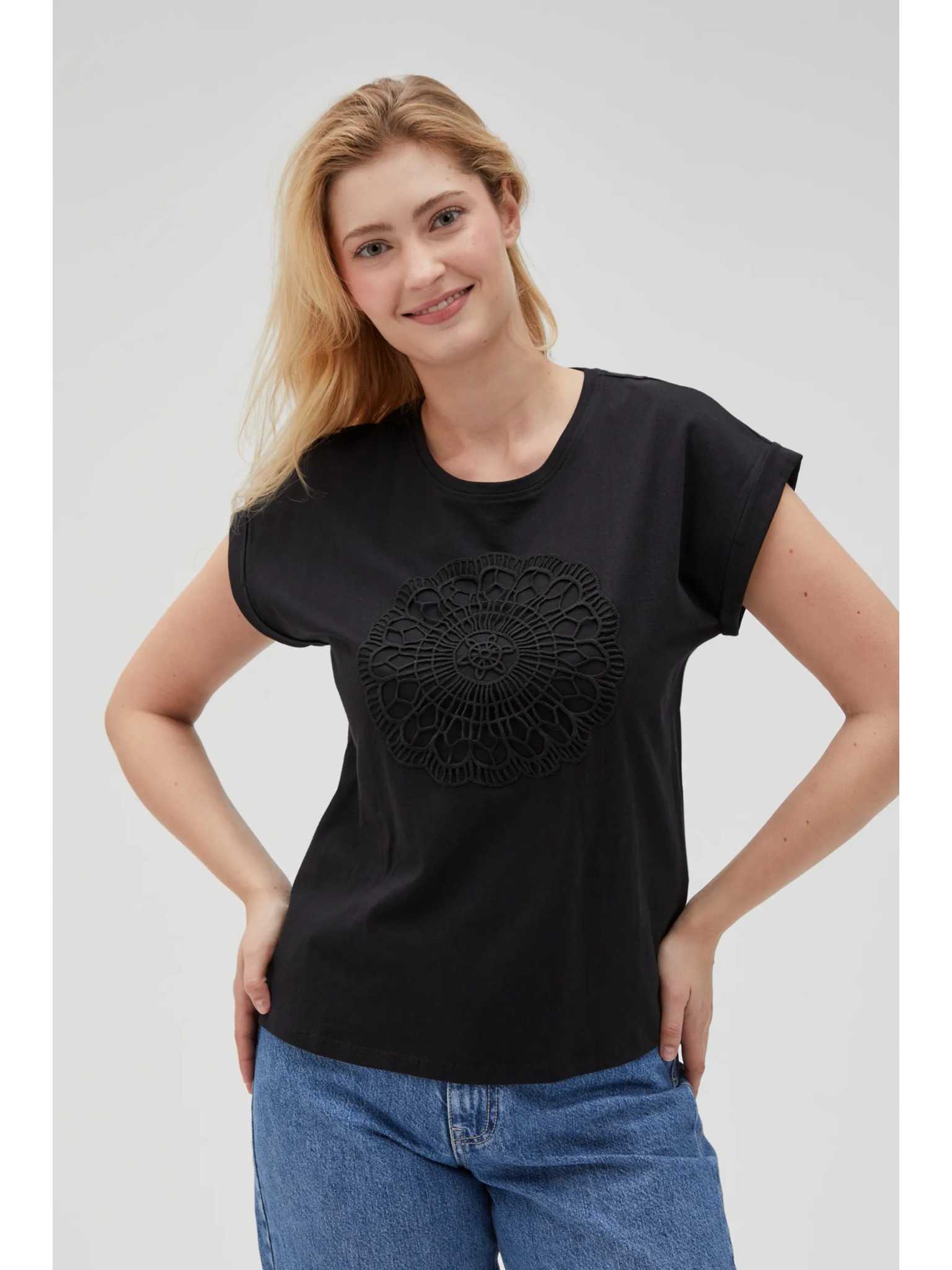 Črna ženska majica z aplikacijo ORSAY