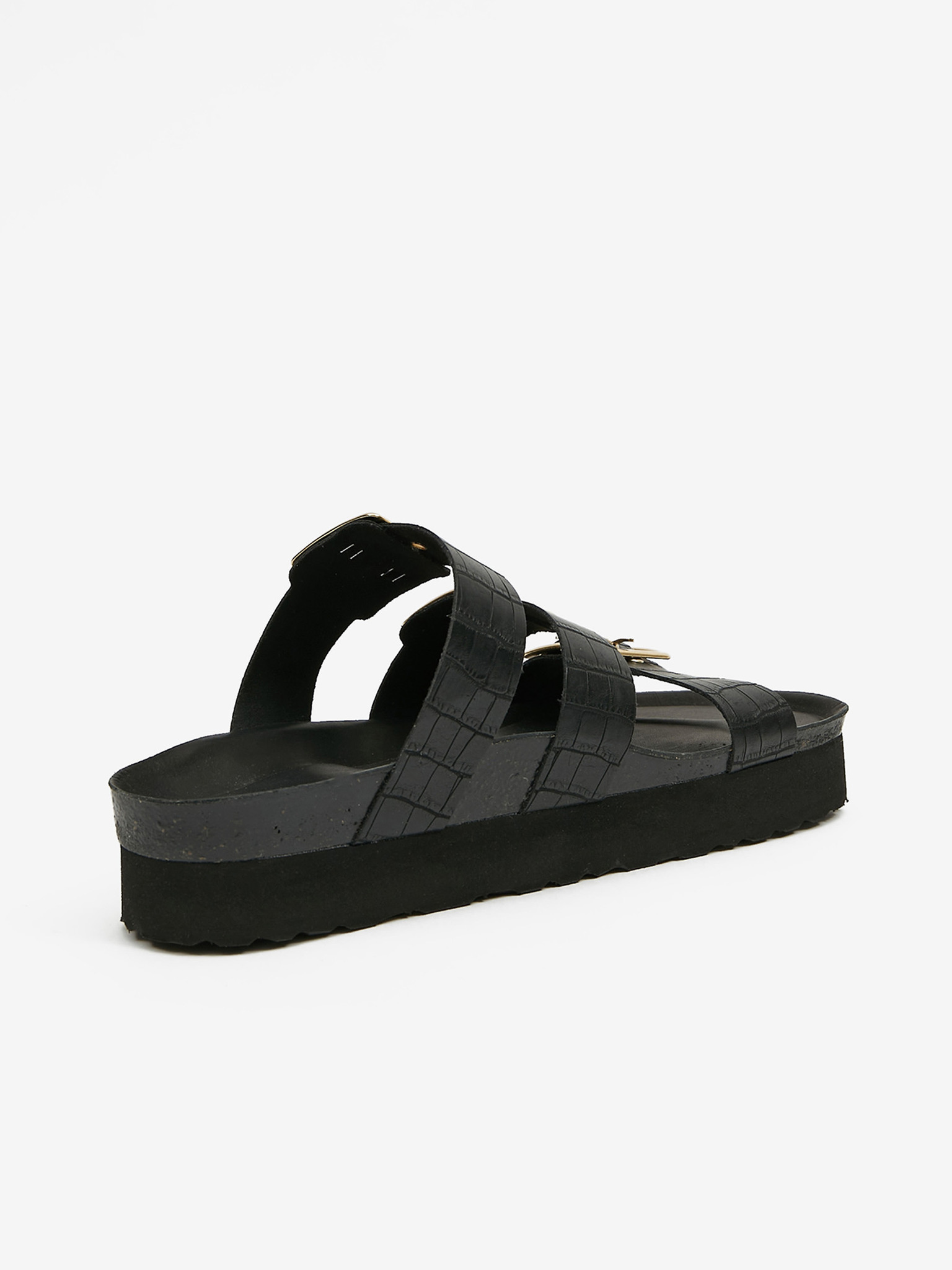 Črni ženski usnjeni copati s peto OJJU
