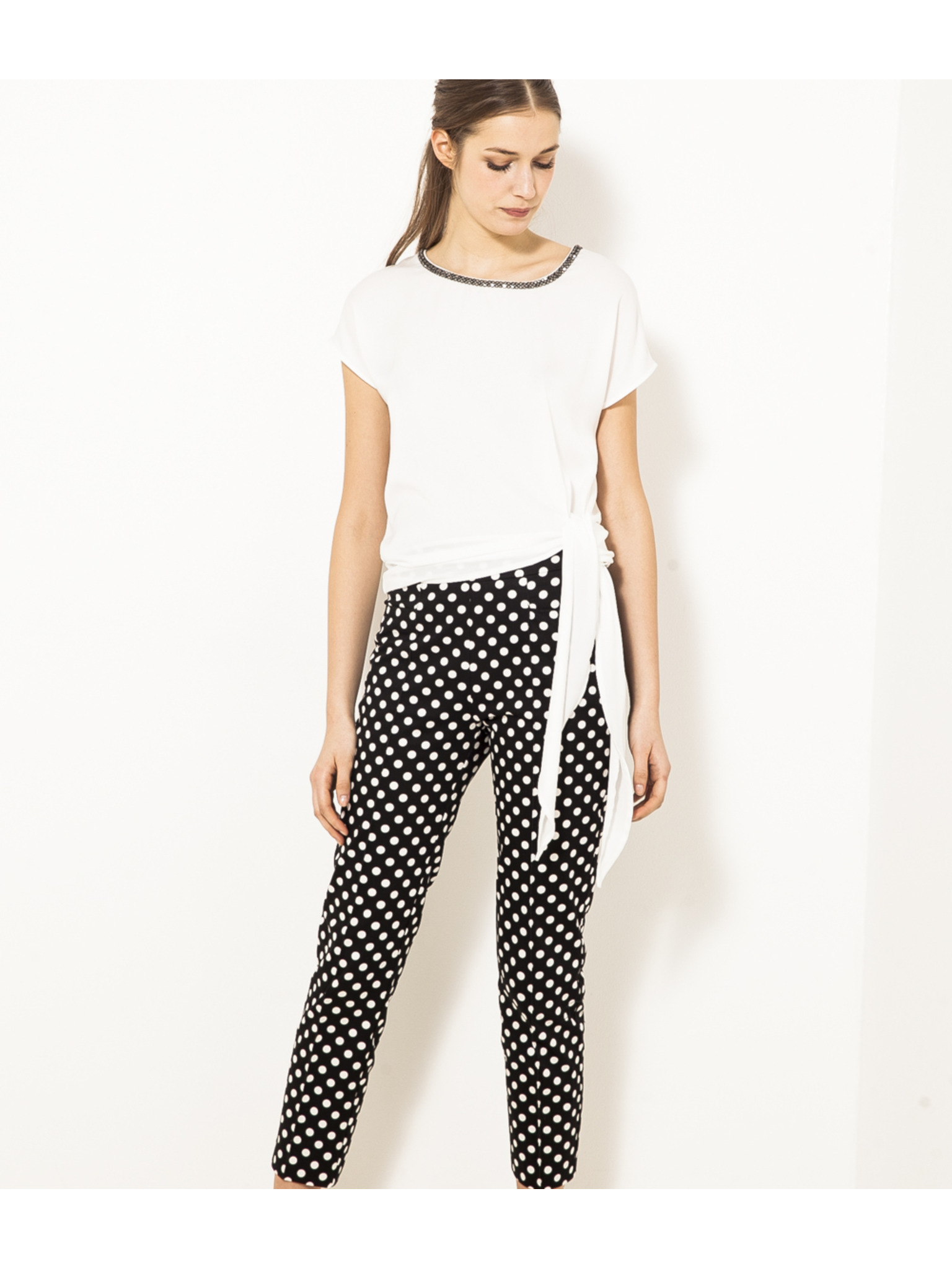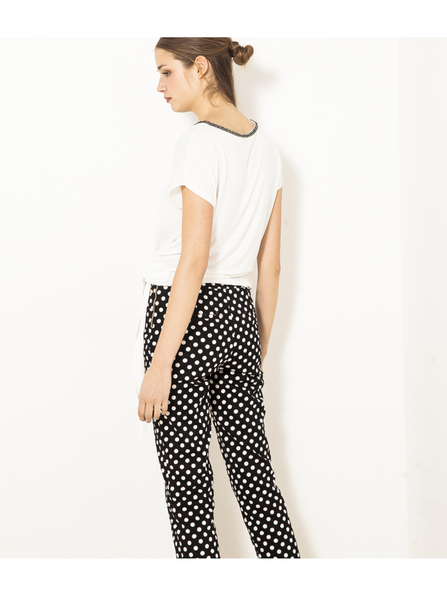 Belo vzorčasto majico z vozlom