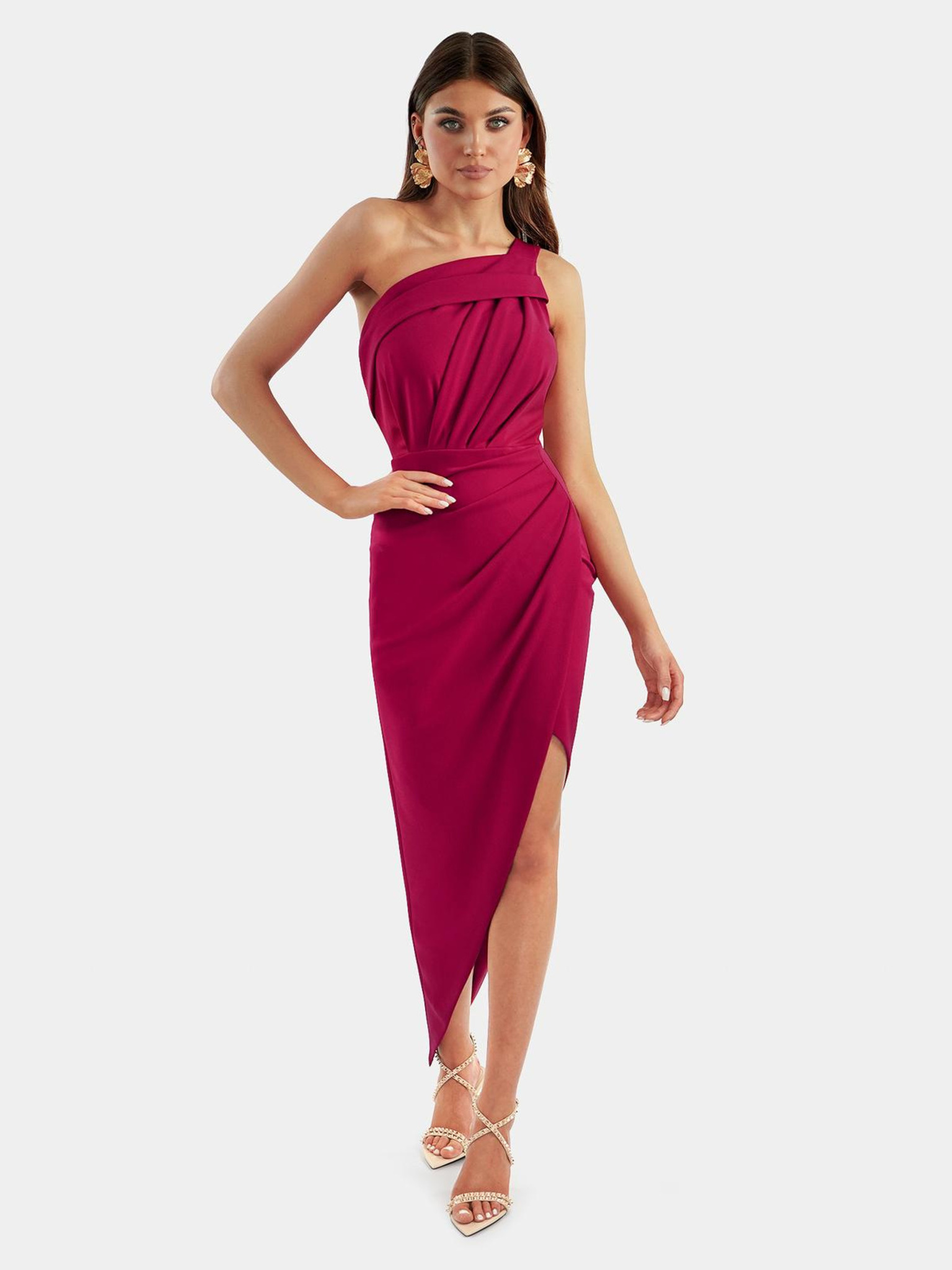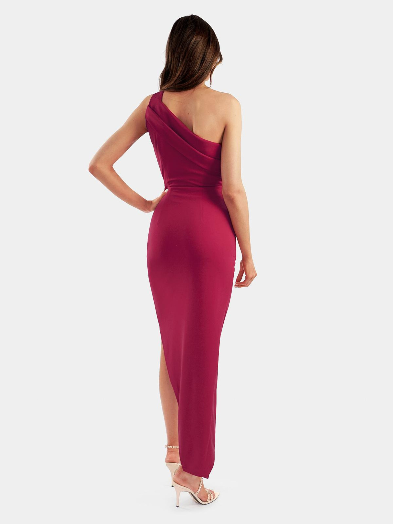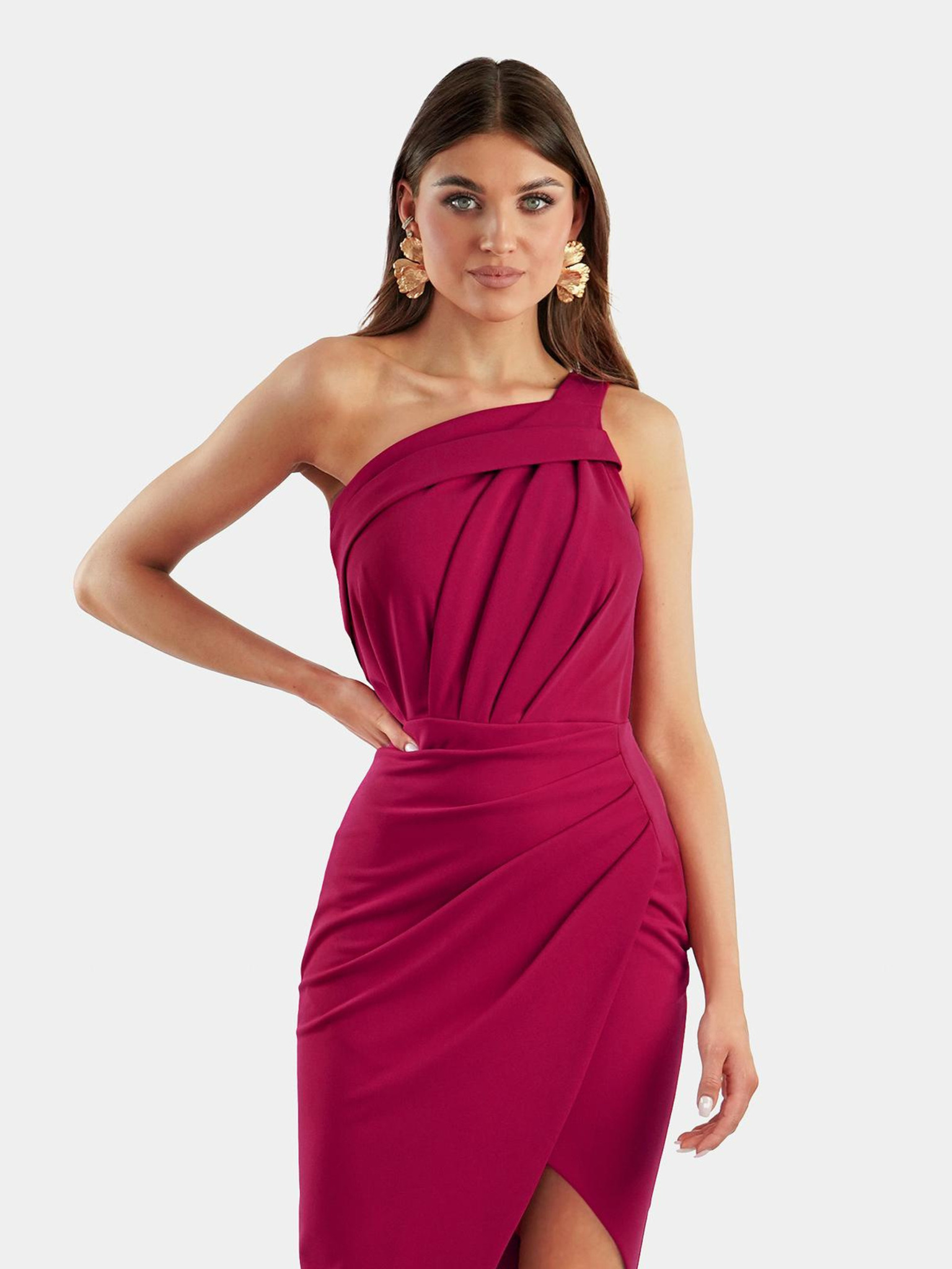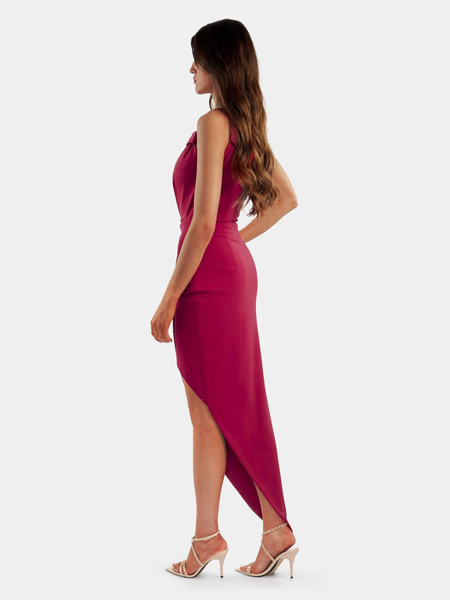 Bleščeča dolga obleka z izrezom - fuksija Numoco CRYSTAL
