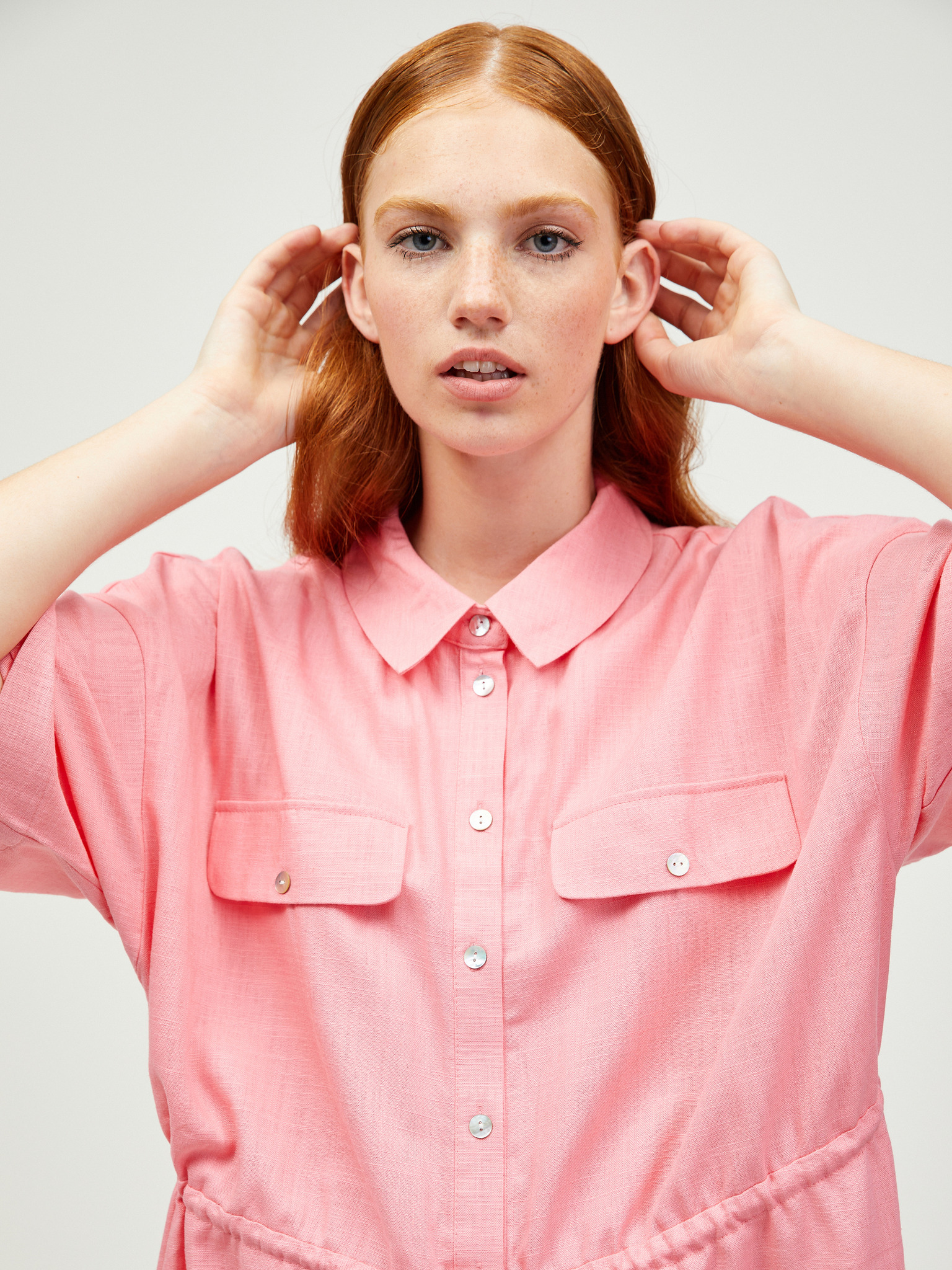 Roza ženska srajčna obleka Moodo