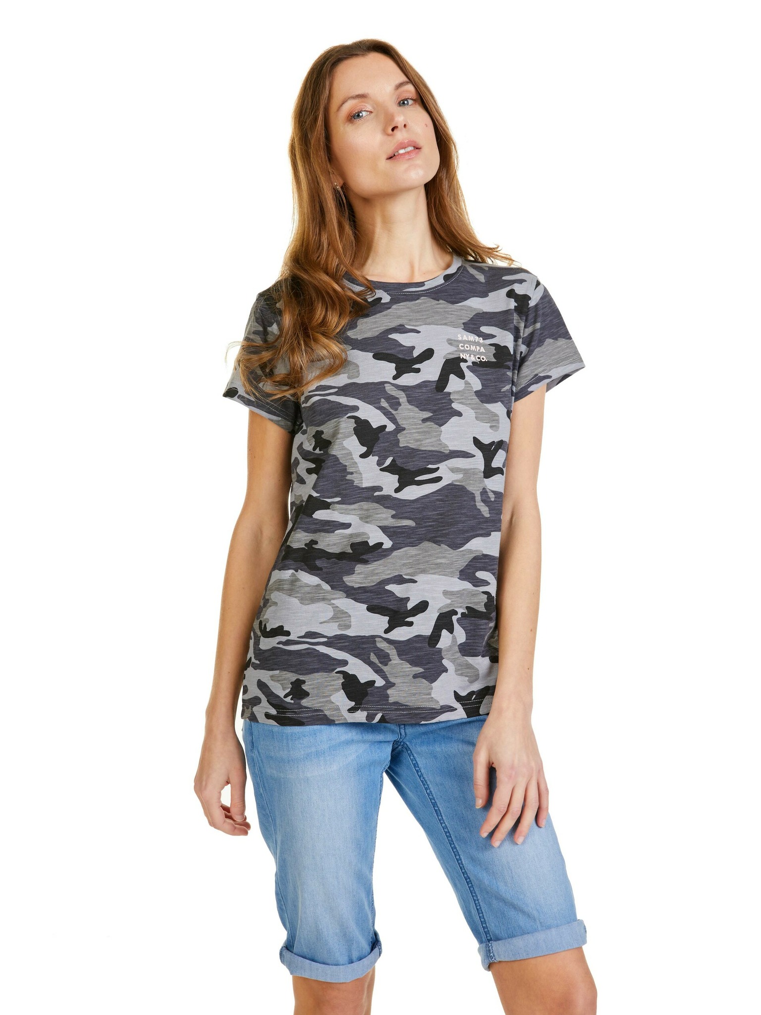 Bela in rožnata ženska majica z vzorcem SAM73 Taurus