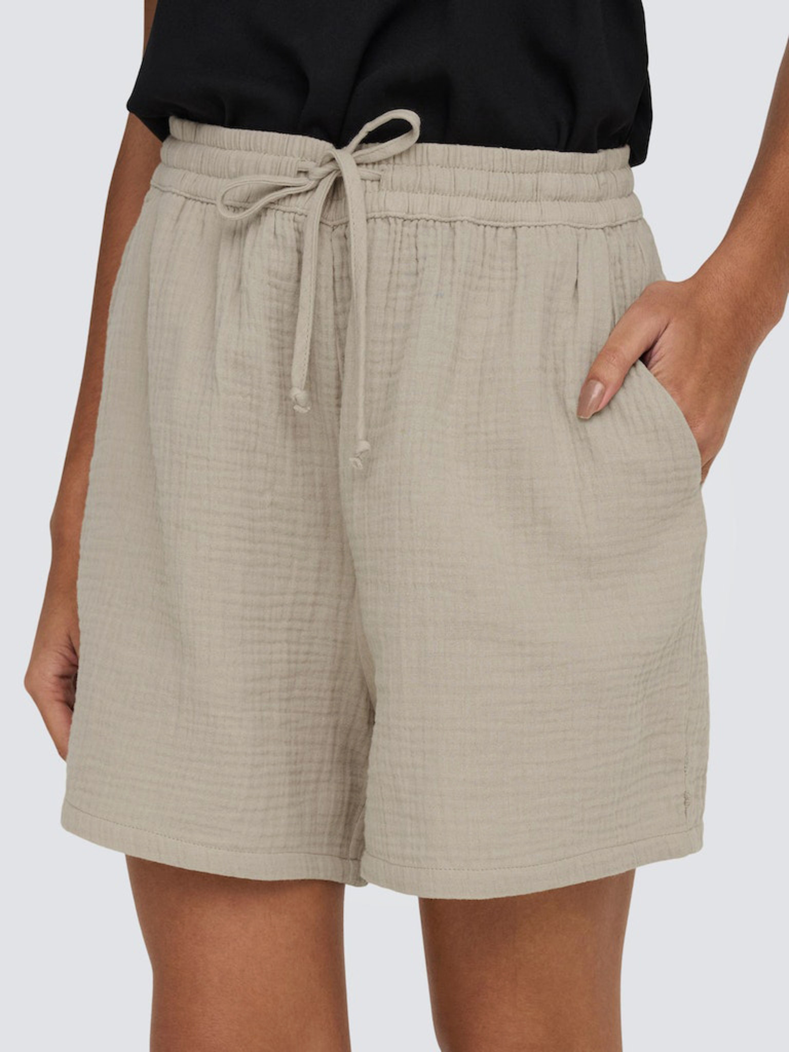 Kremaste kratke hlače z žepi