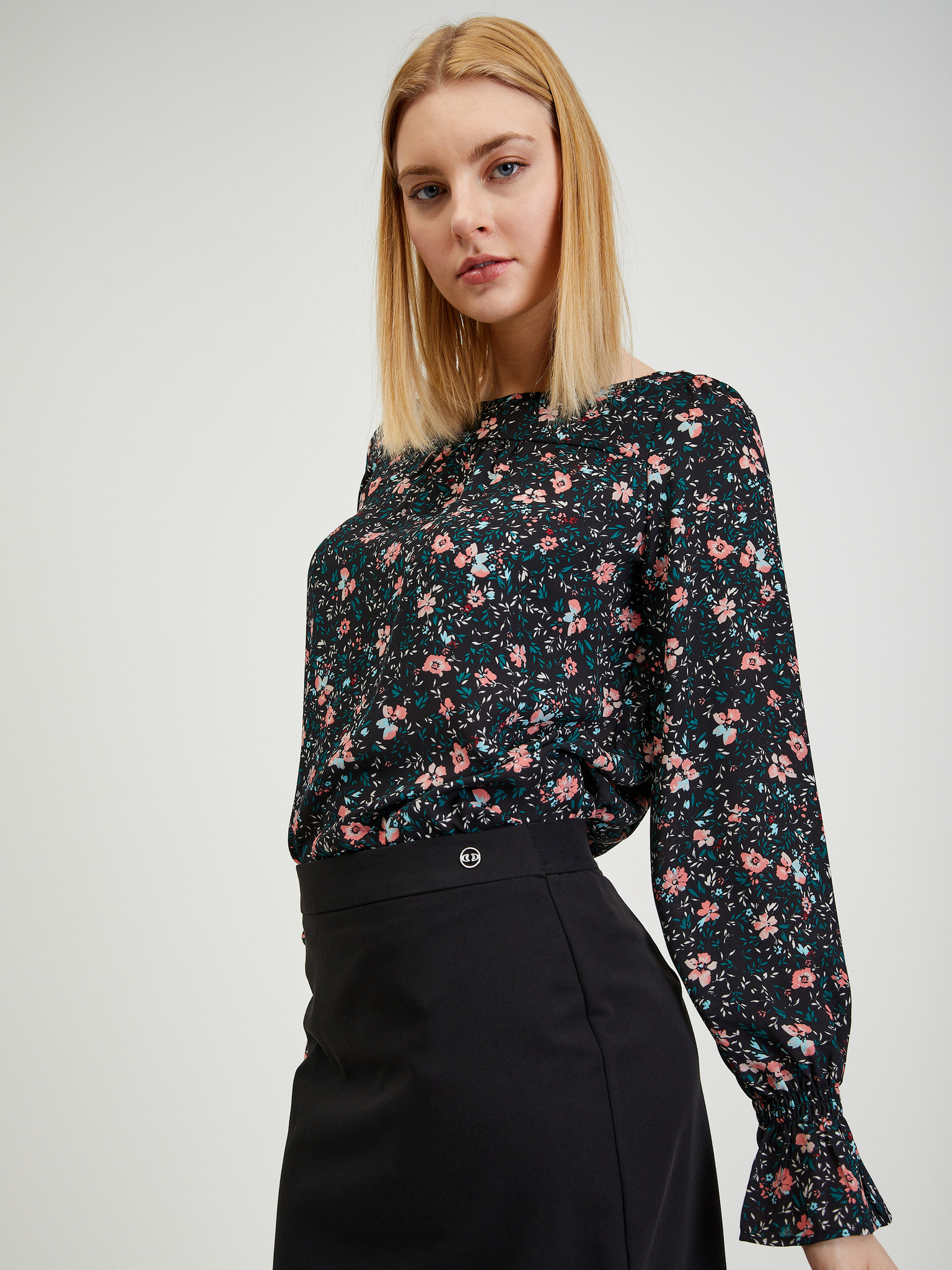 Črna ženska midi krilo z cvetličnim vzorcem ORSAY
