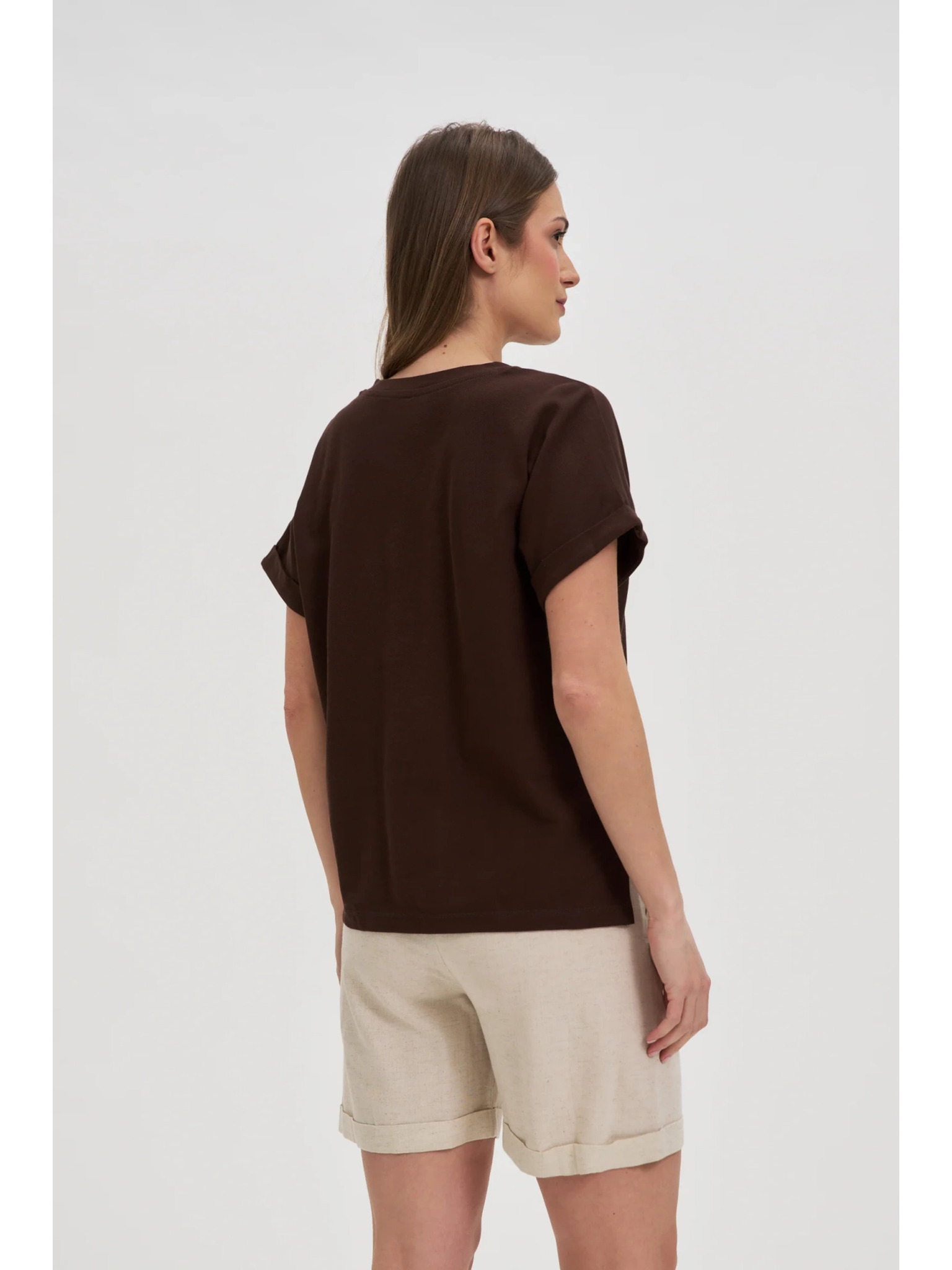 Ženski rjav top z madeira robom