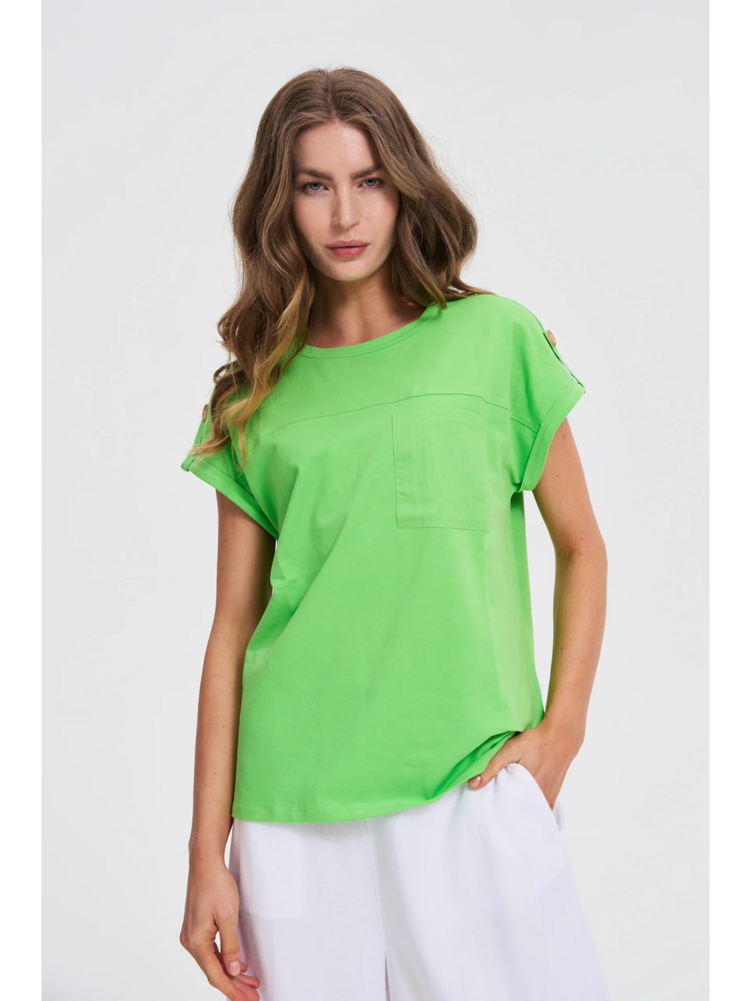 Ženski top z žepom Moodo – olivna zelena
