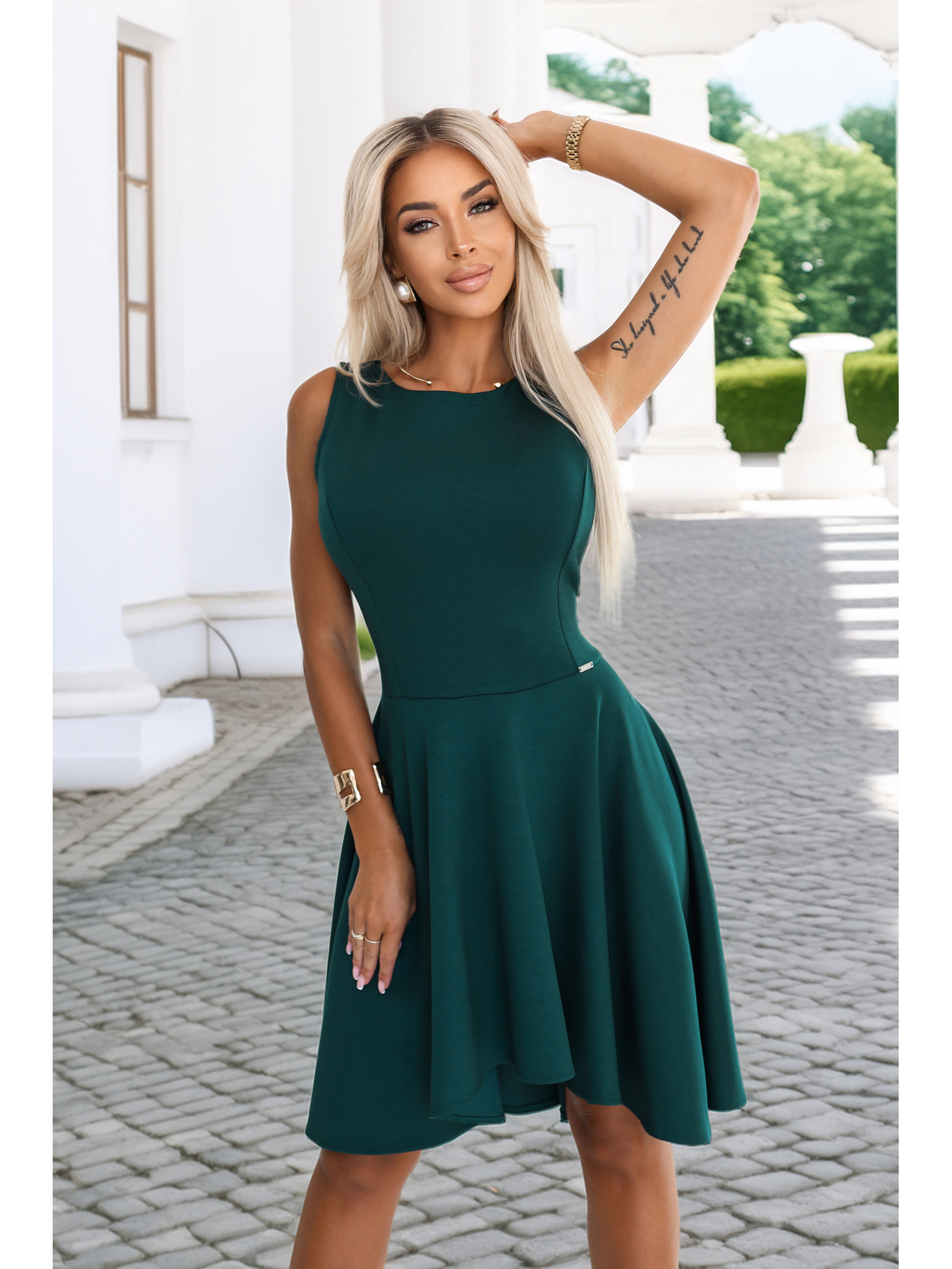 Valovite obleke z učinkovitim podaljšanim hrbtom – stekleničasto zelene
