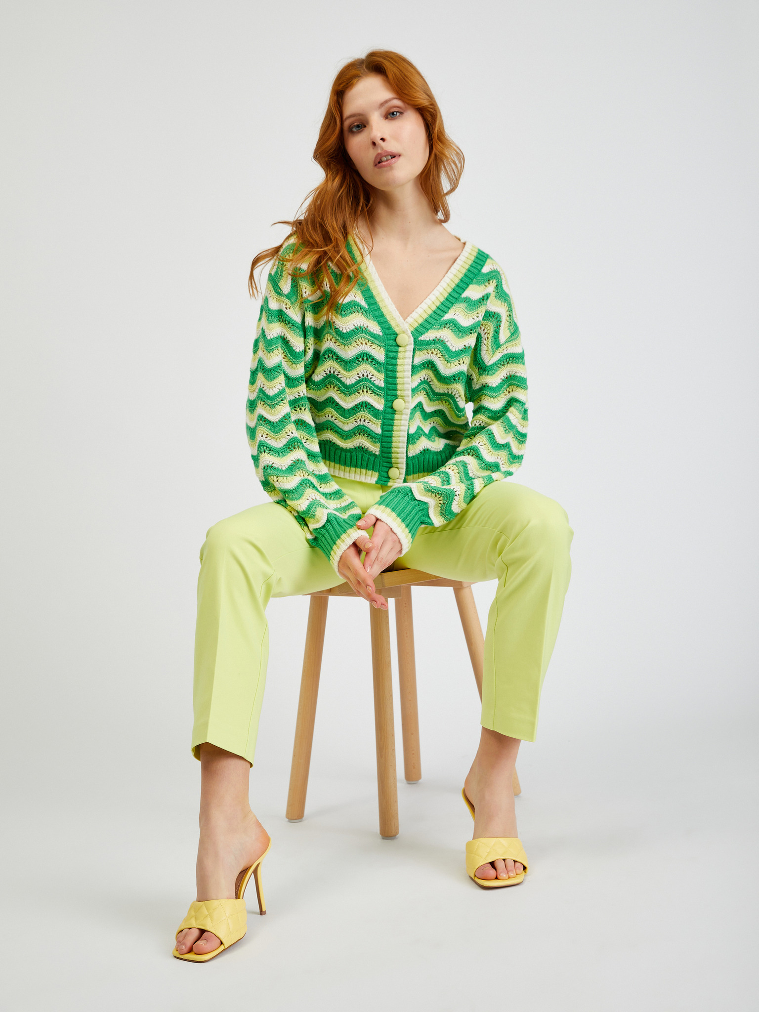 Zelen ženski kardigan z dodatkom volne ORSAY