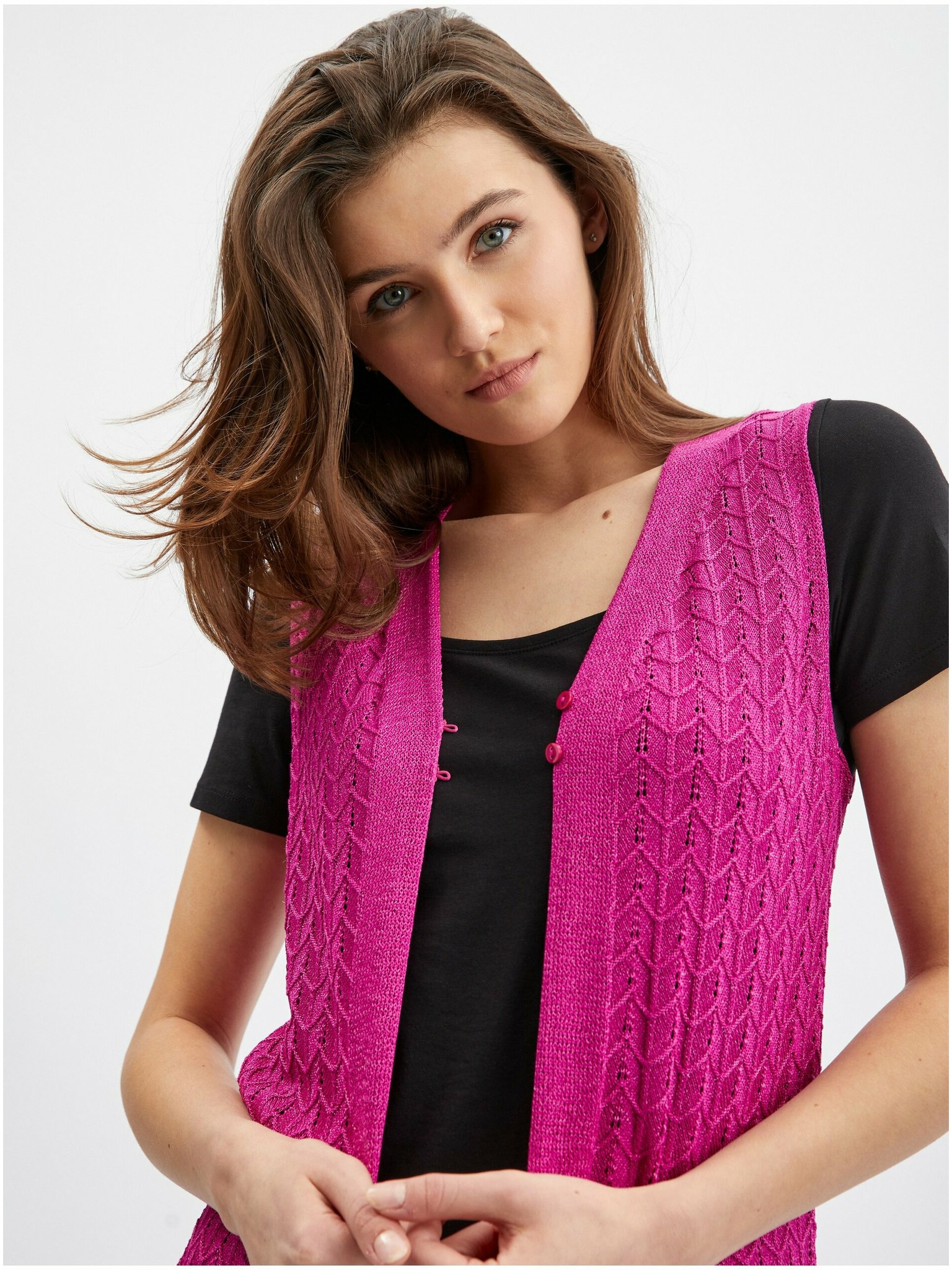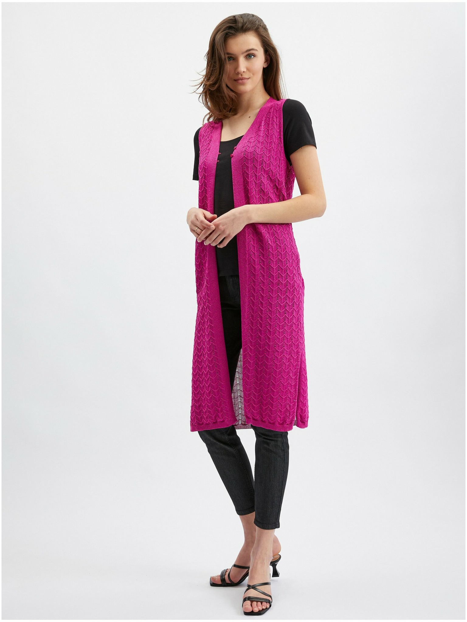 Temno rožnat kratek kardigan s tričetrtinskimi rokavi ORSAY
