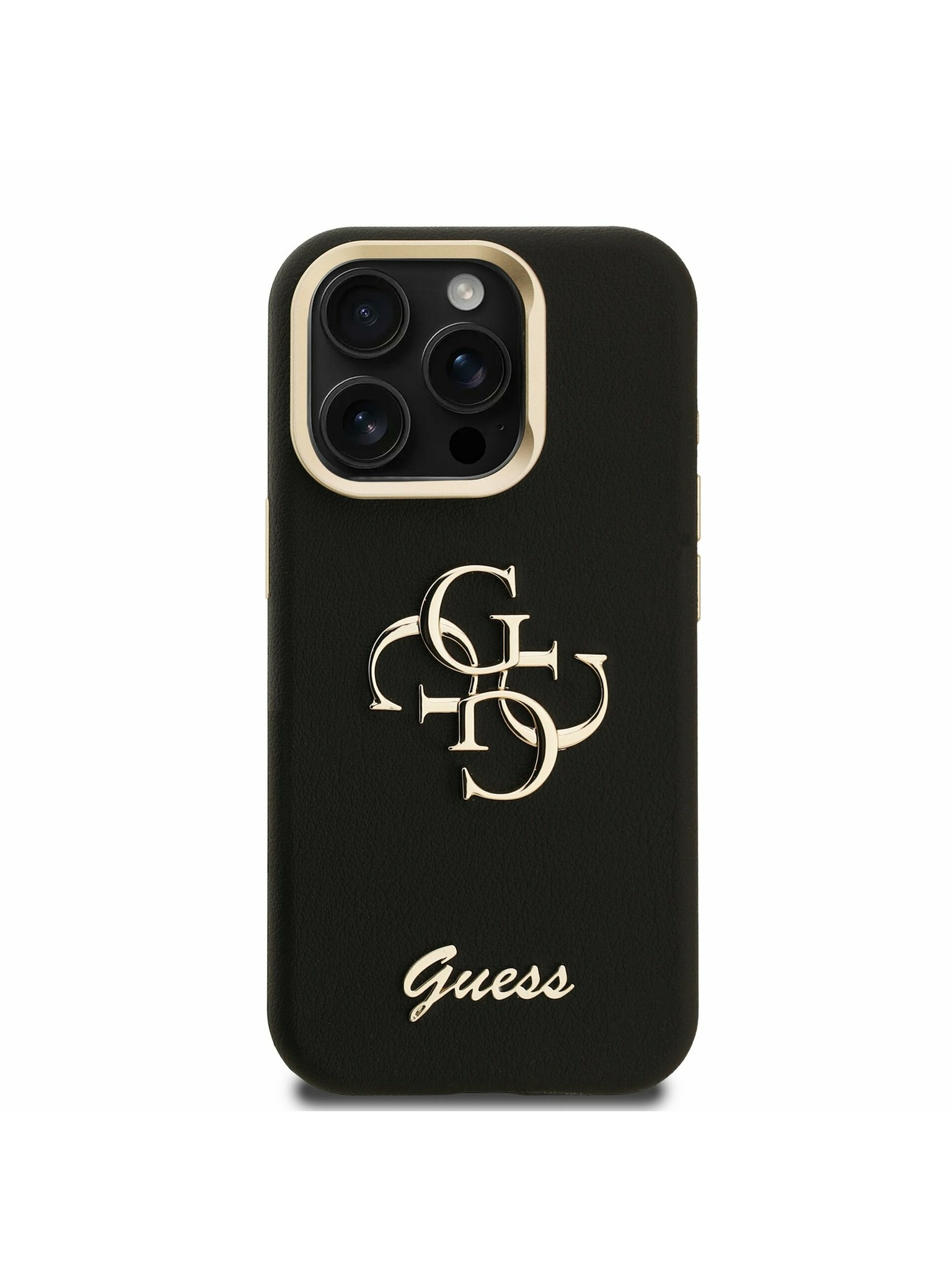 Guess PU Grained 4G Kovinski Logo Zadnji ovitek za iPhone 16e Črn