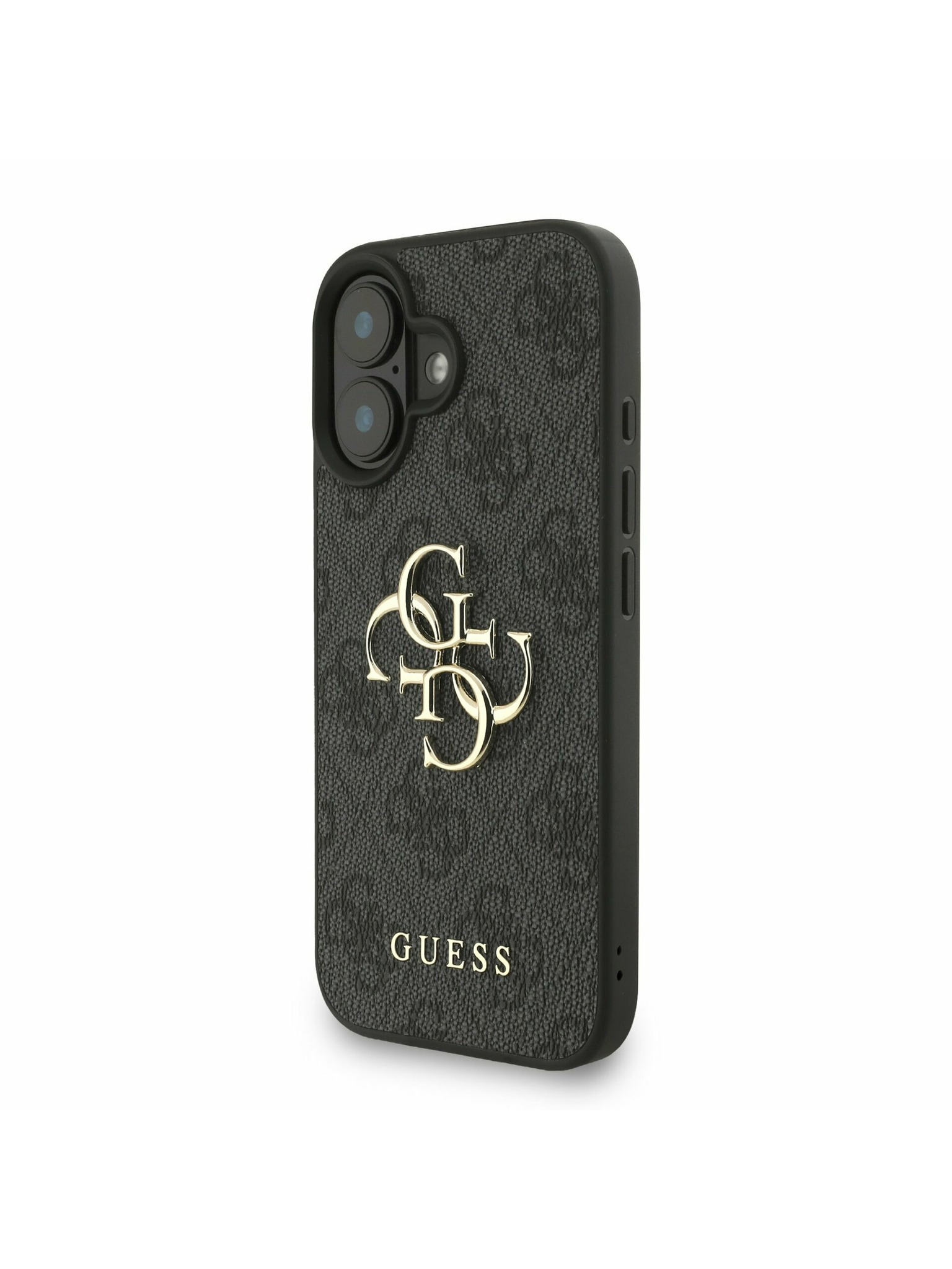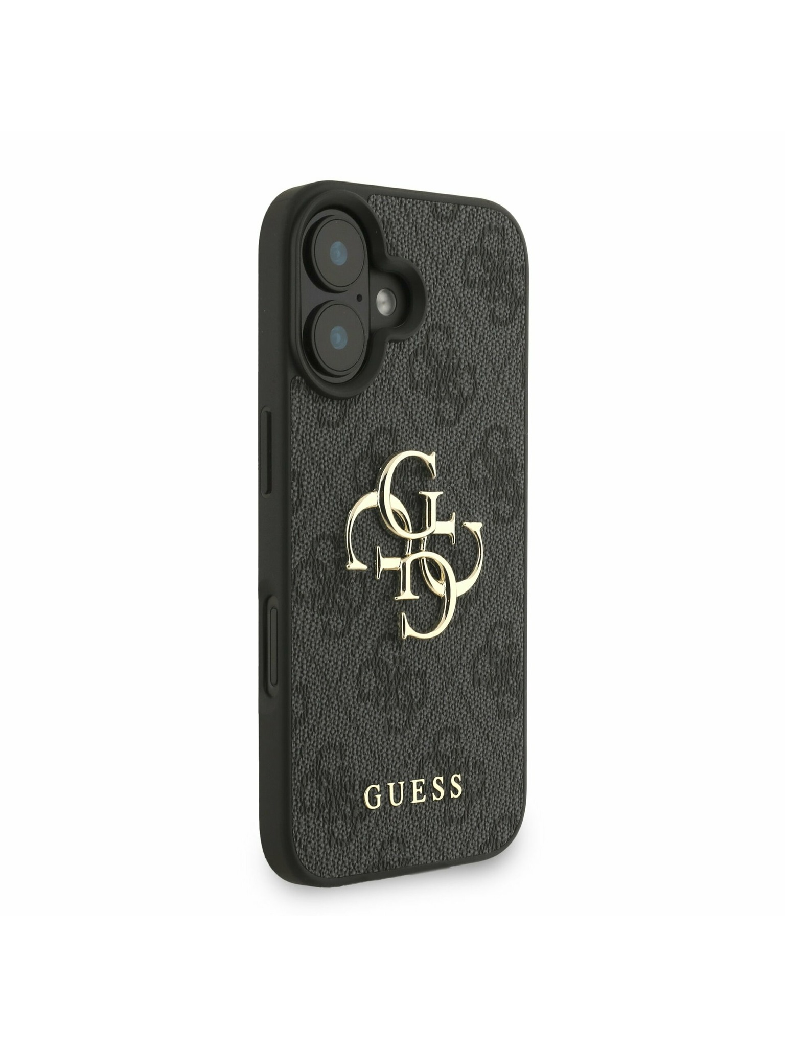 Guess PU Grained 4G Kovinski Logo Zadnji ovitek za iPhone 16e Črn