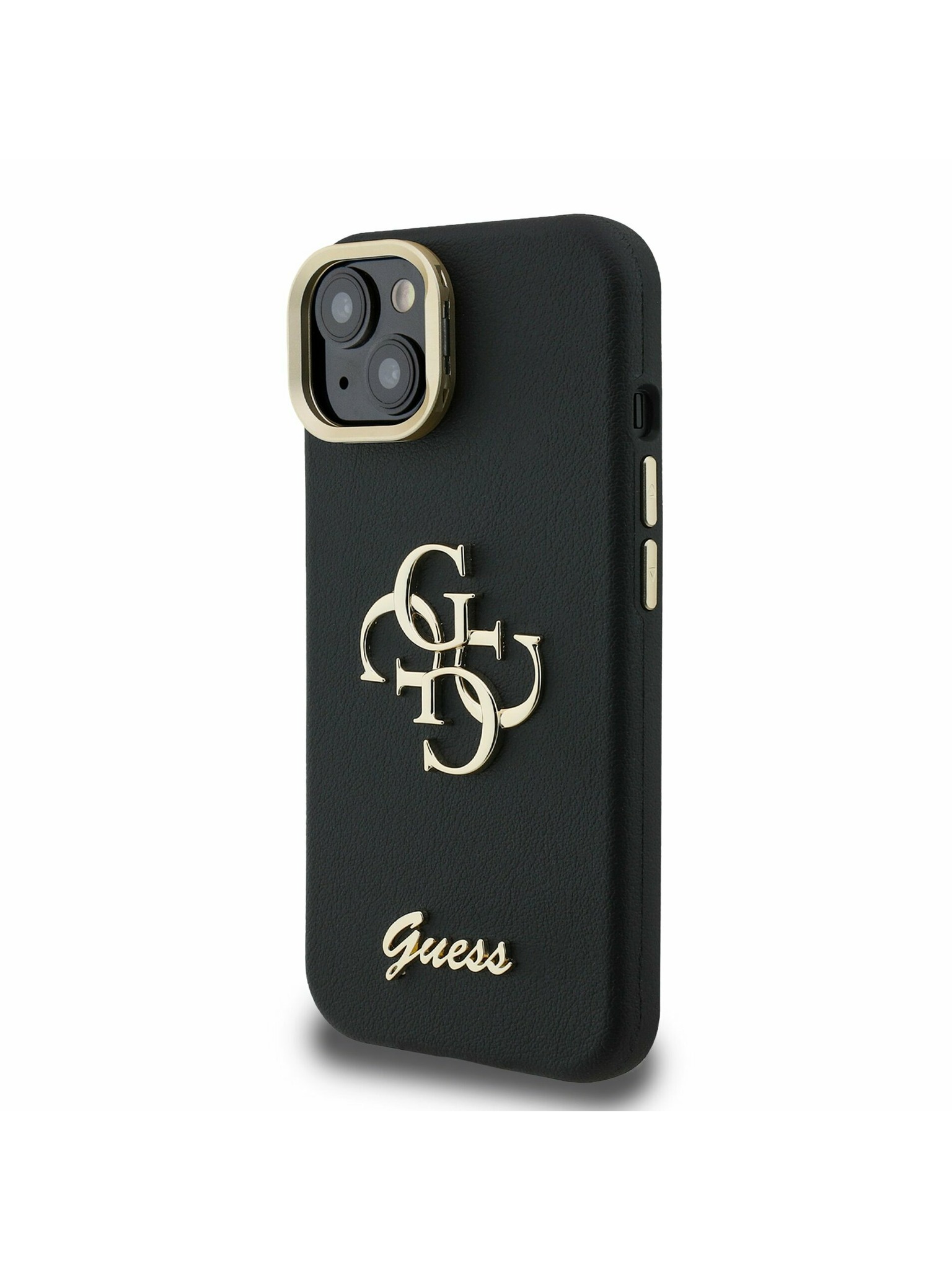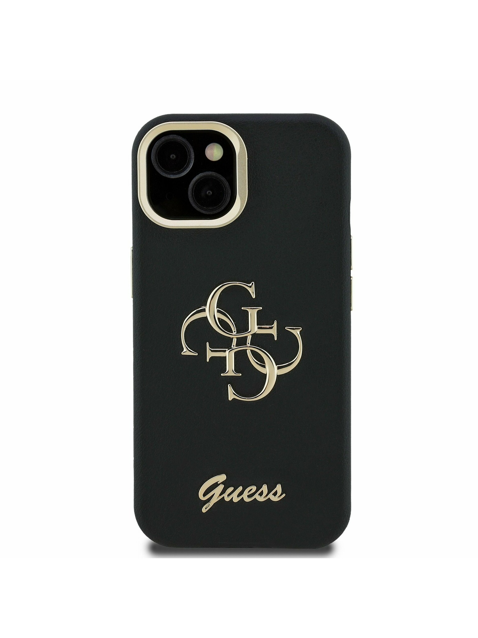 Guess PU Grained 4G Logo Stand Camera Frame Zadnji ovitek za iPhone 13 Črn