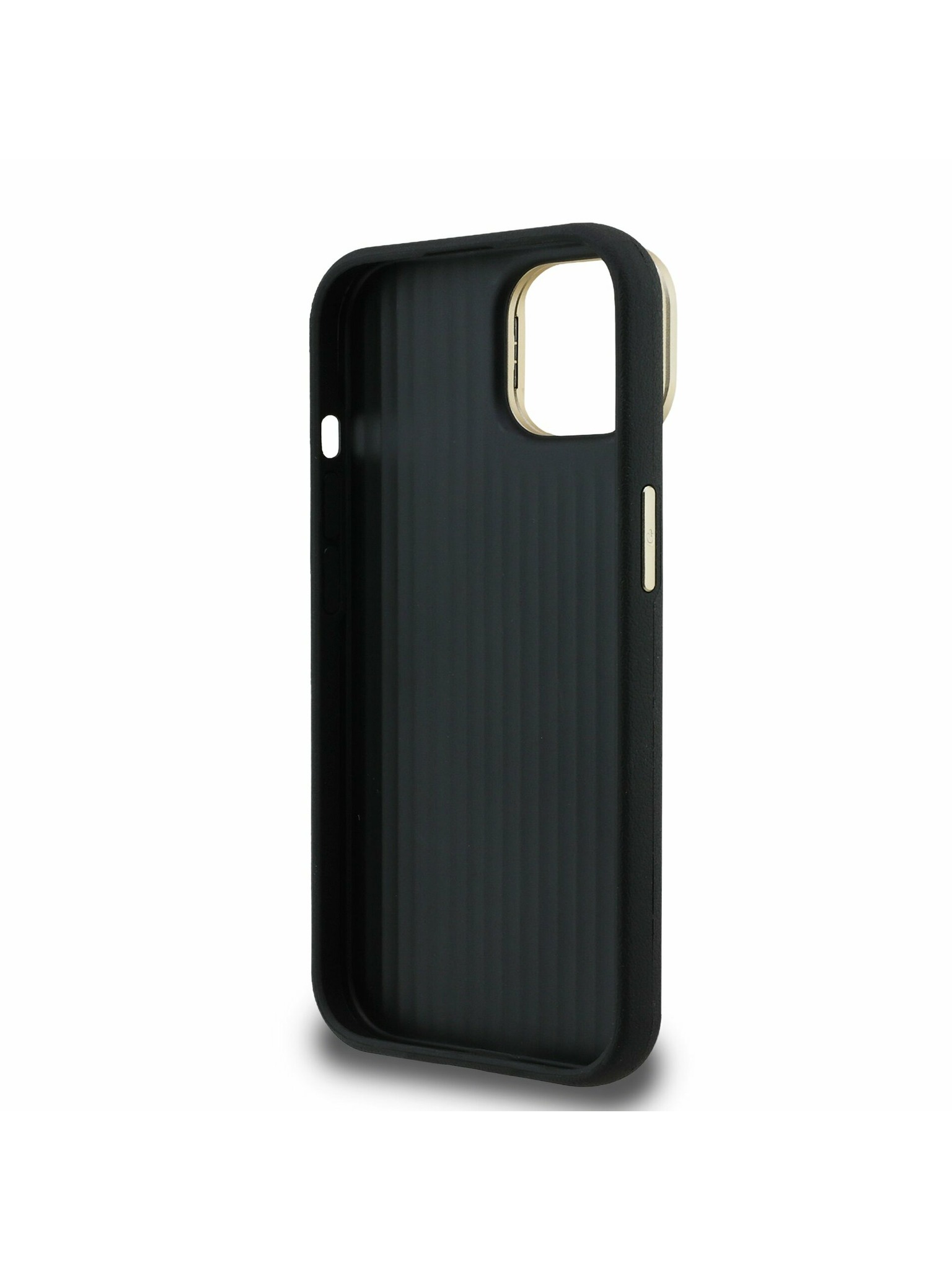 Guess PU Strukturirano 4G Logo Stojalo Okvir kamere Zadnji pokrov za iPhone 15 Black
