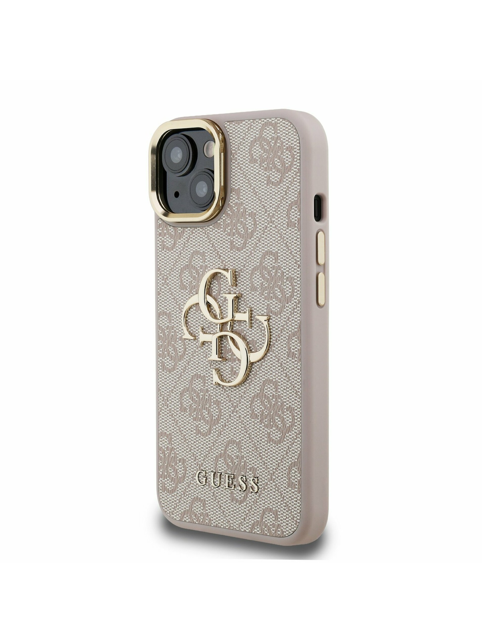 Guess PU Strukturirano 4G Logo Stojalo Okvir kamere Zadnji pokrov za iPhone 15 Pink