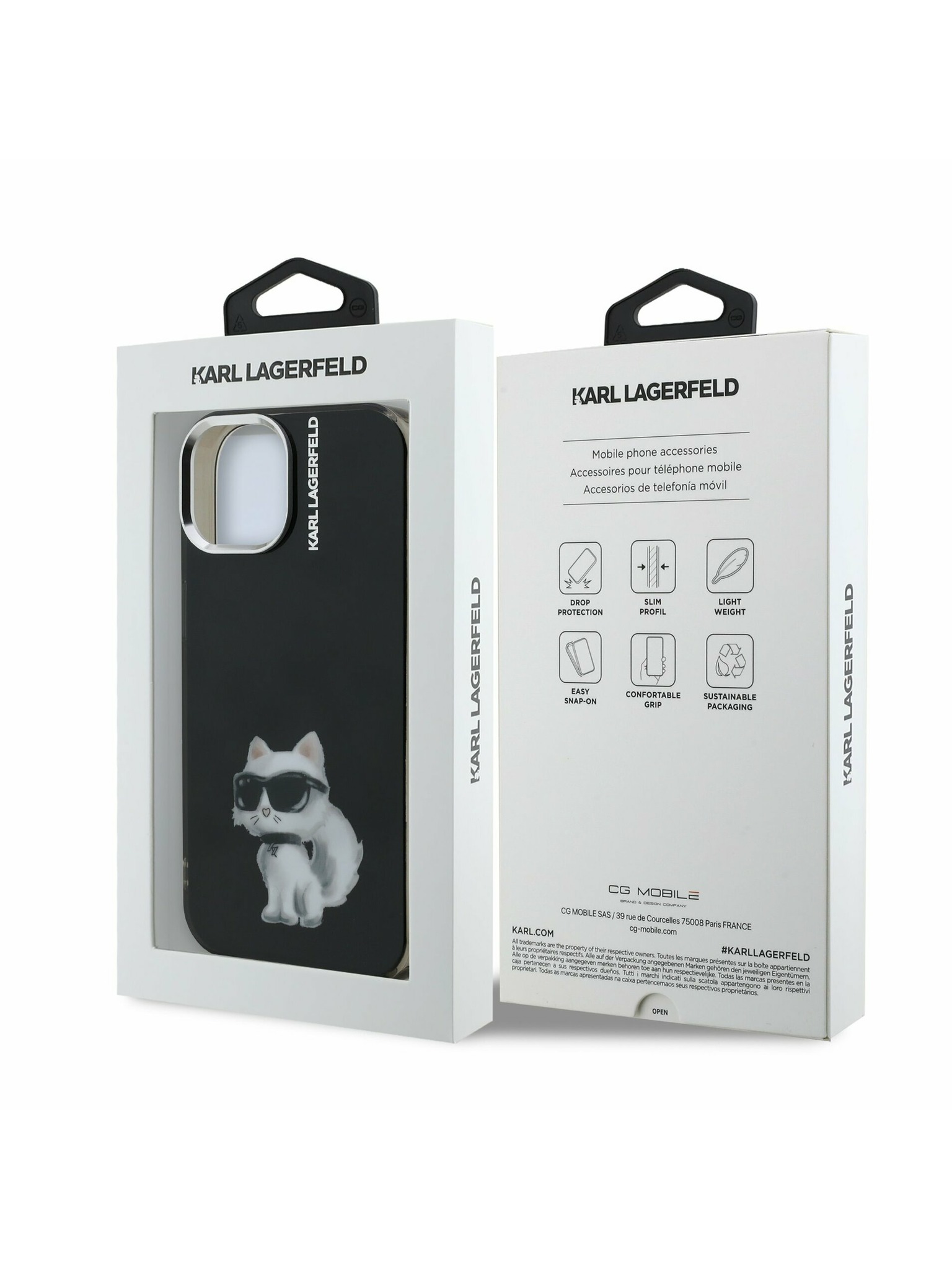 Karl Lagerfeld IML Aquarelle Choupette zadnji pokrov za iPhone 15 Pro Black