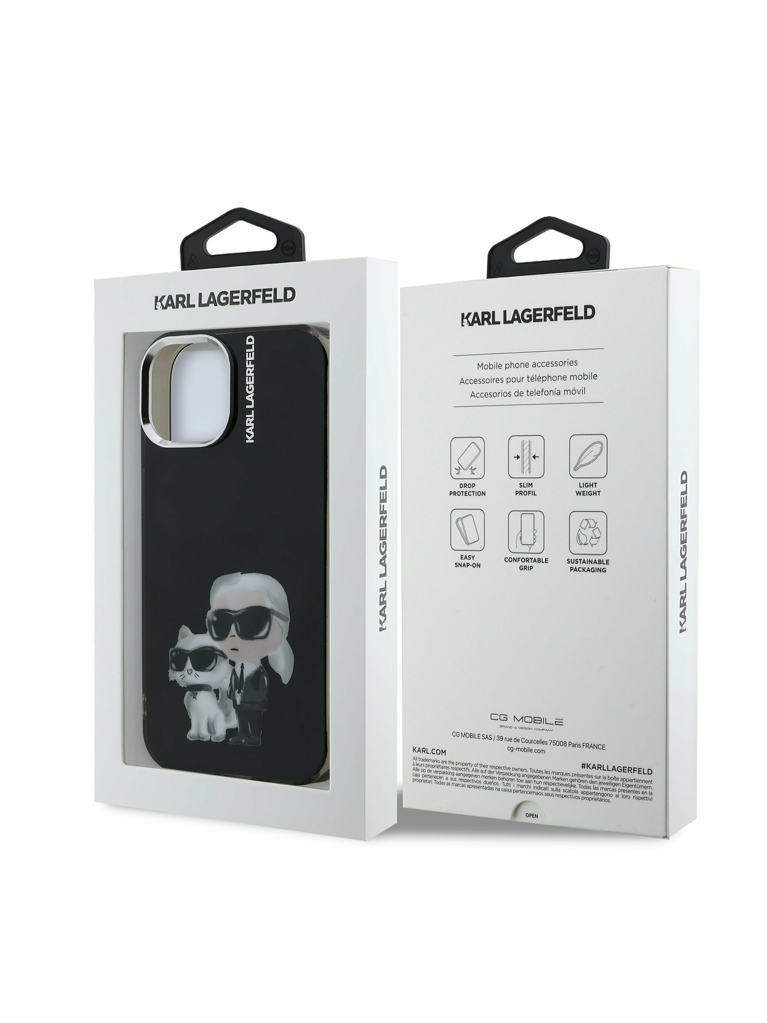 Karl Lagerfeld IML Aquarelle Karl and Choupette Zadnji Pokrov za iPhone 16 Črna