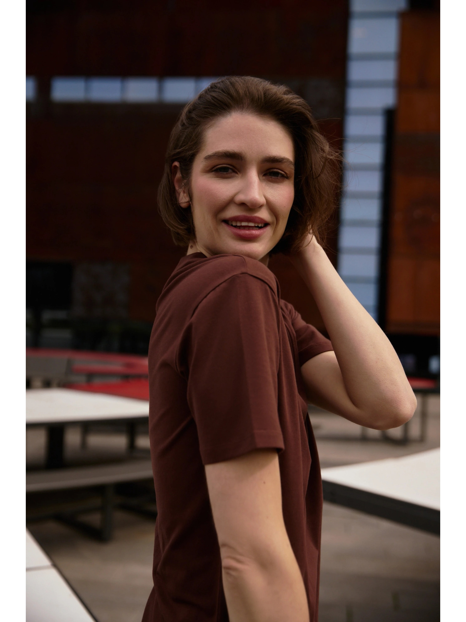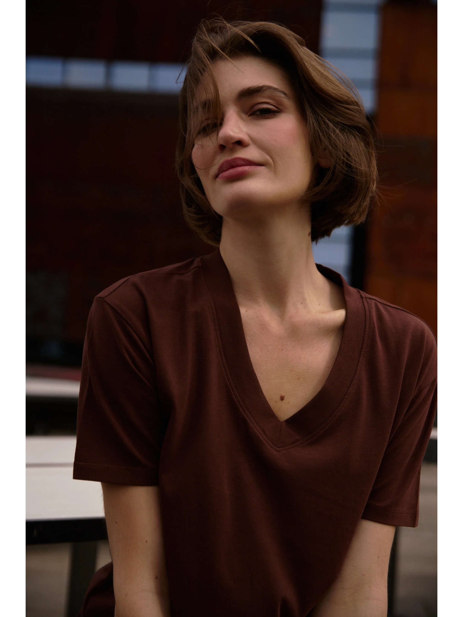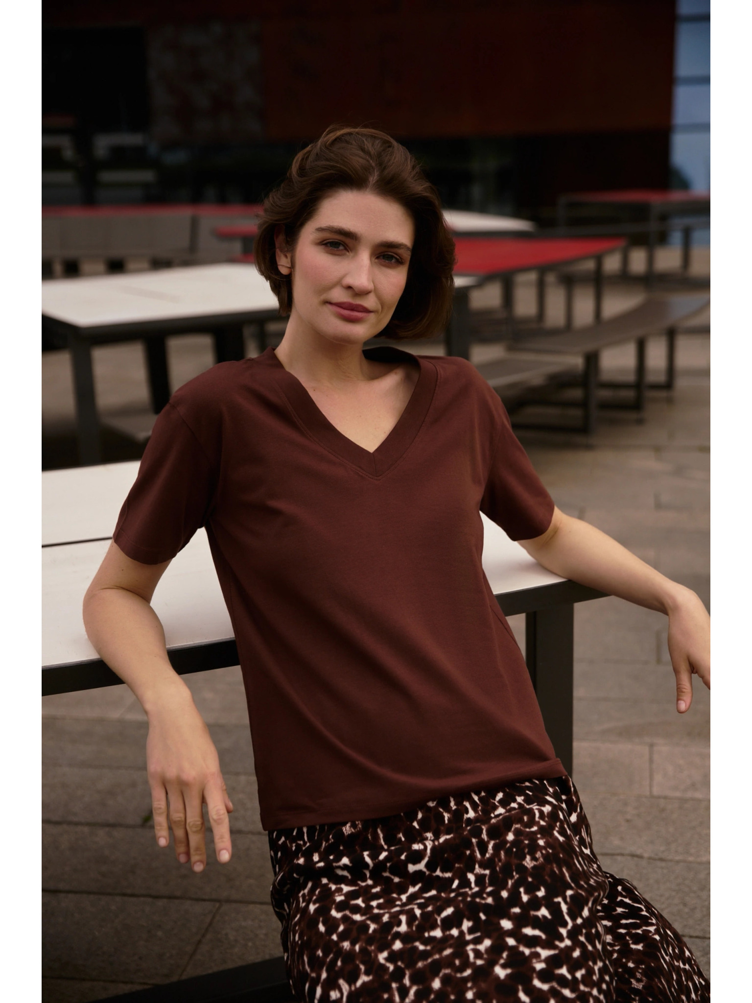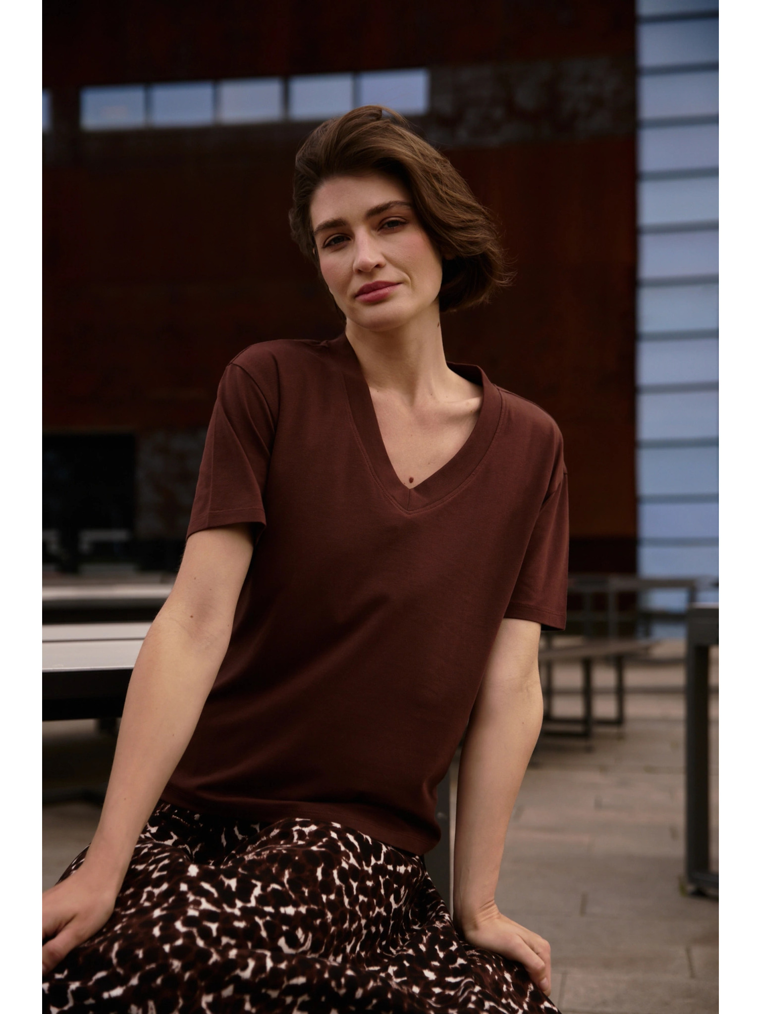 Žensko majčko z žepom Moodo – temno rjavo