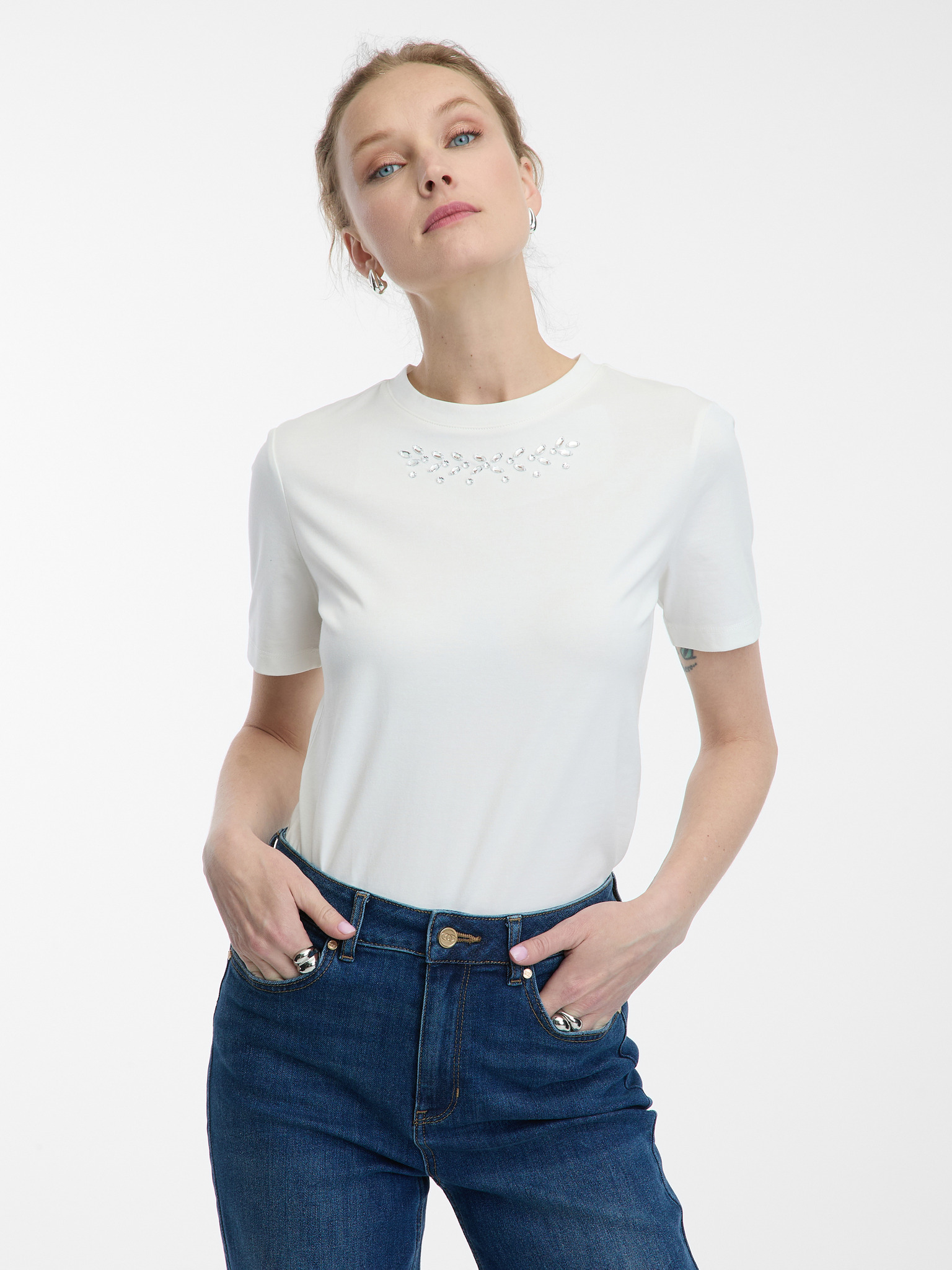 Bela ženska majica z aplikacijo ORSAY